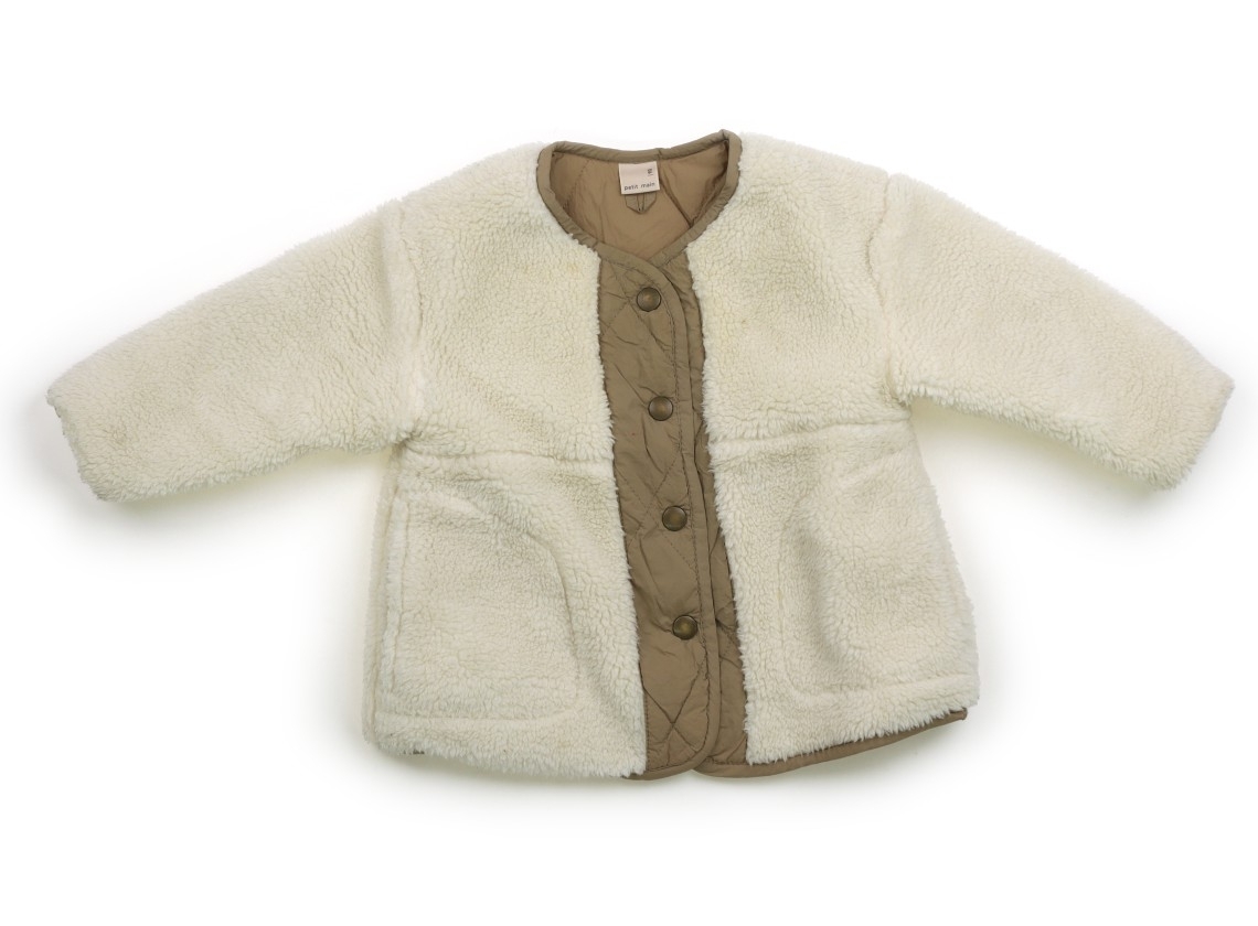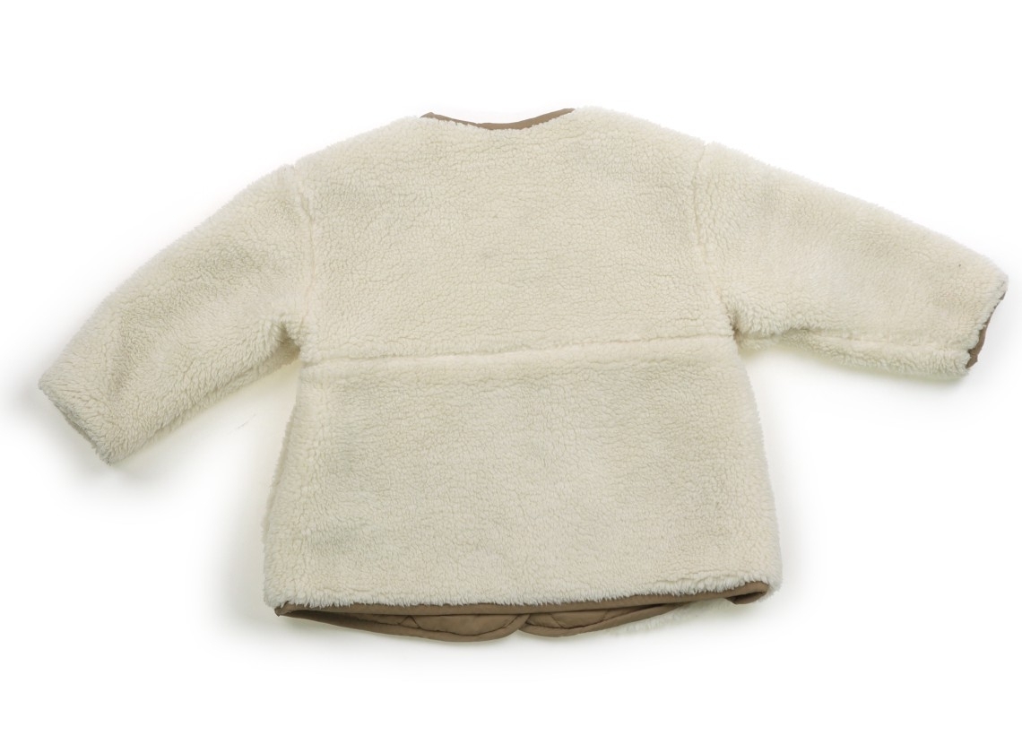 ボアフリース生地。キルティング部分はポリエステル。中綿の暖かいアイテムです。ボタンに擦れ傷、首元下付近に黄色いシミが複数あります。ボアとパイピングに毛玉付着あります。