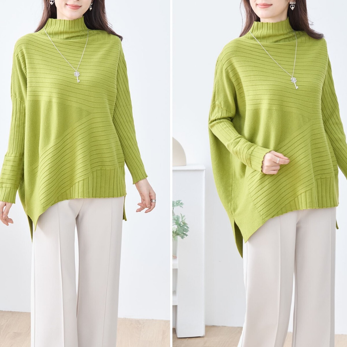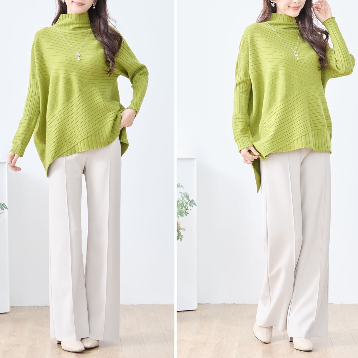 いろいろなデザインの切り替えがポイントのハイネックニットです☆
