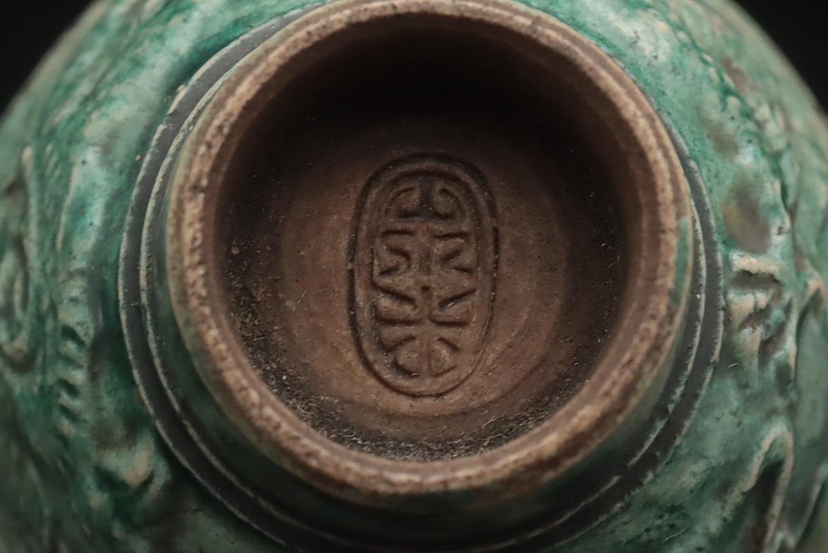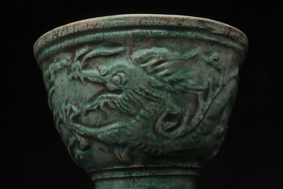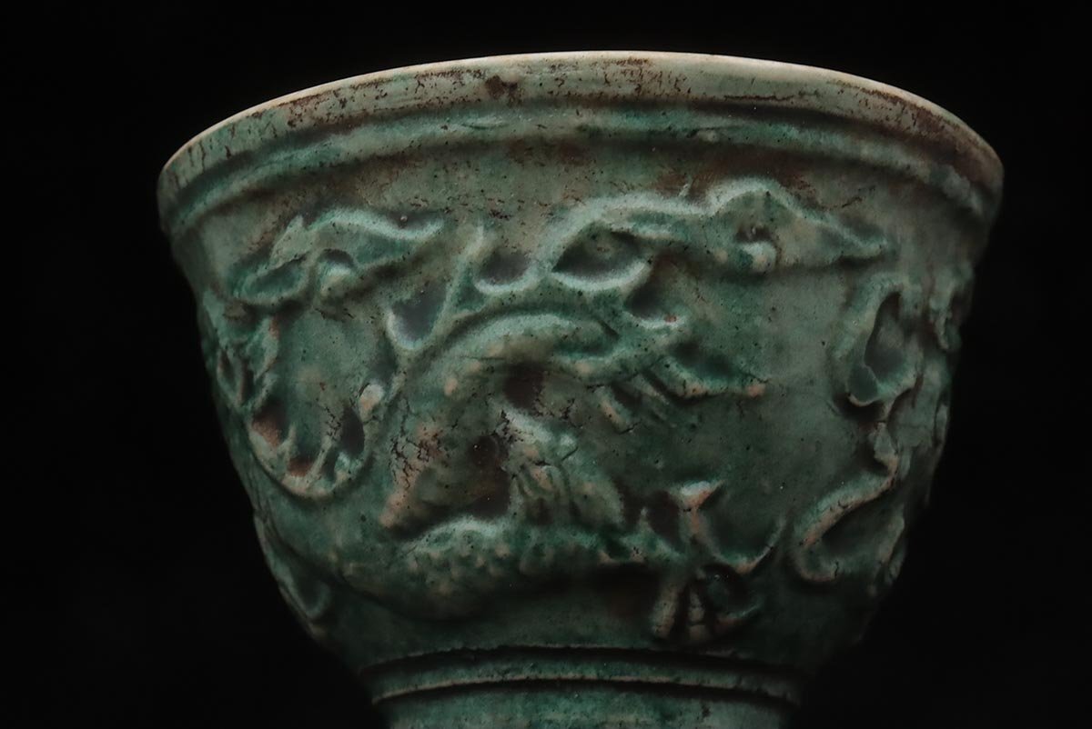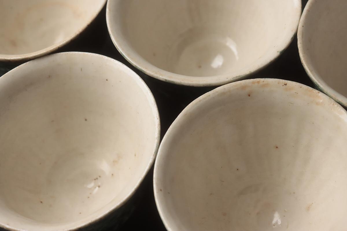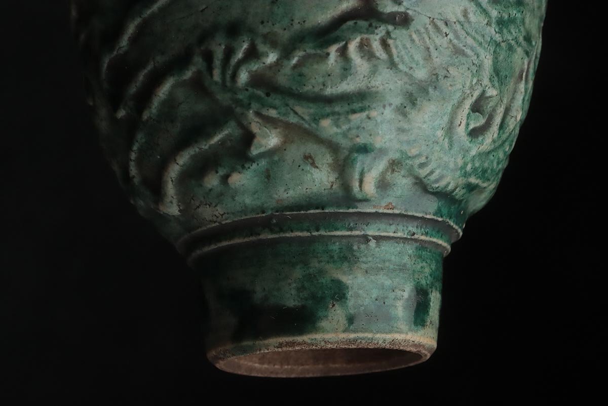 ◆ 時代【名工 青木木米 造】緑釉 陽刻 珠追龍図 茶碗・煎茶碗 五客・茶杯 茶具 茶器 煎茶道具 古美術 ◆