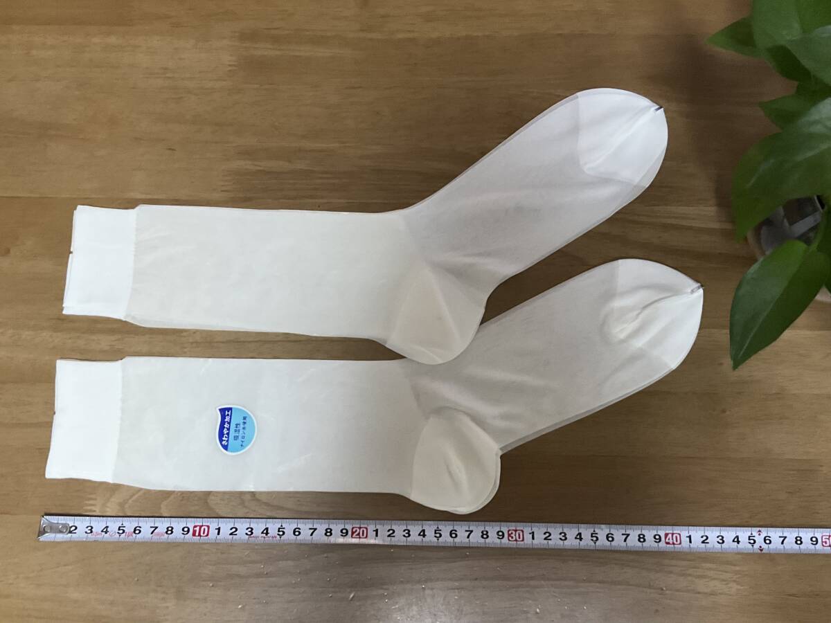 レトロ シースルー メンズソックス 2足 薄手 白 ホワイト 光沢 紳士用靴下 ナイロン 匿名配達