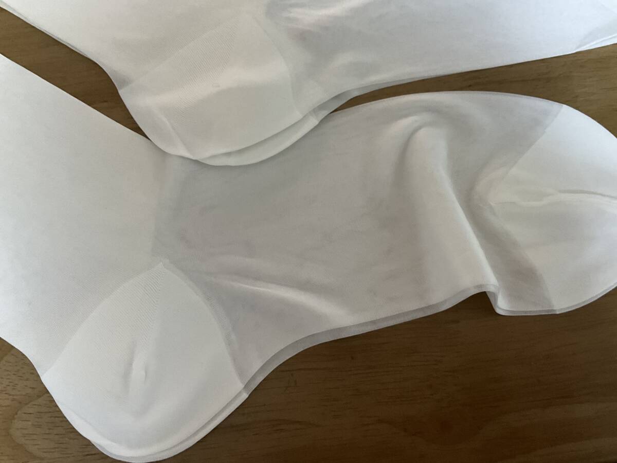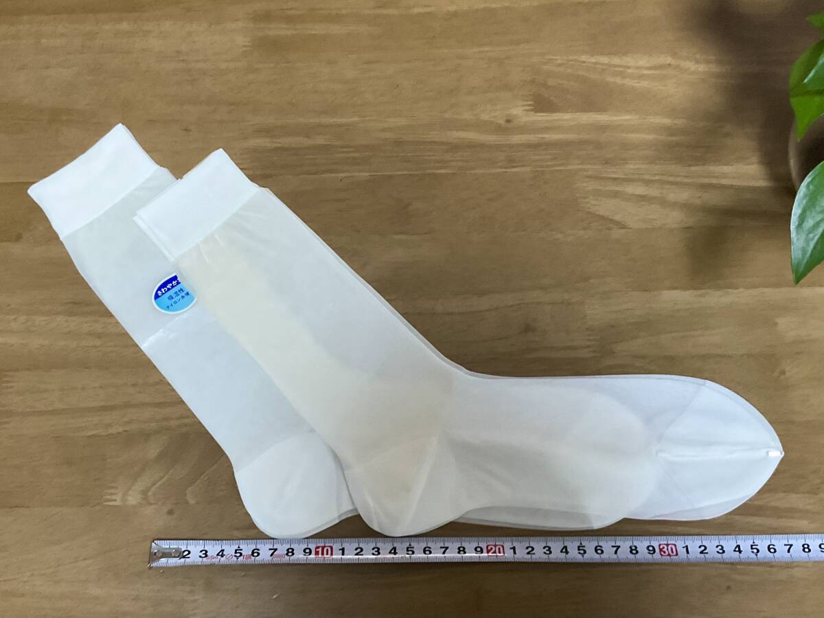 未使用 レトロ シースルー メンズソックス 2足 薄手 白 ホワイト 光沢 紳士用靴下 ナイロン匿名配達