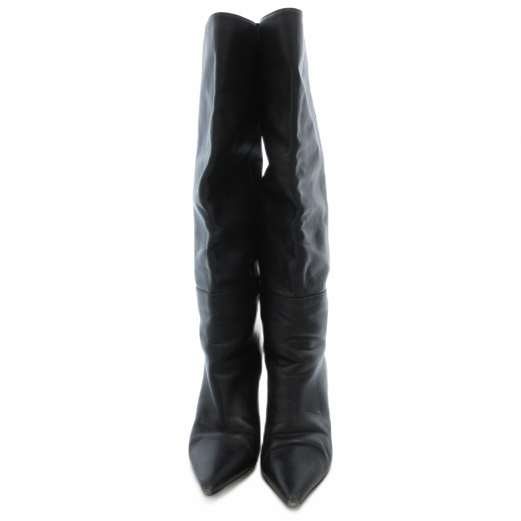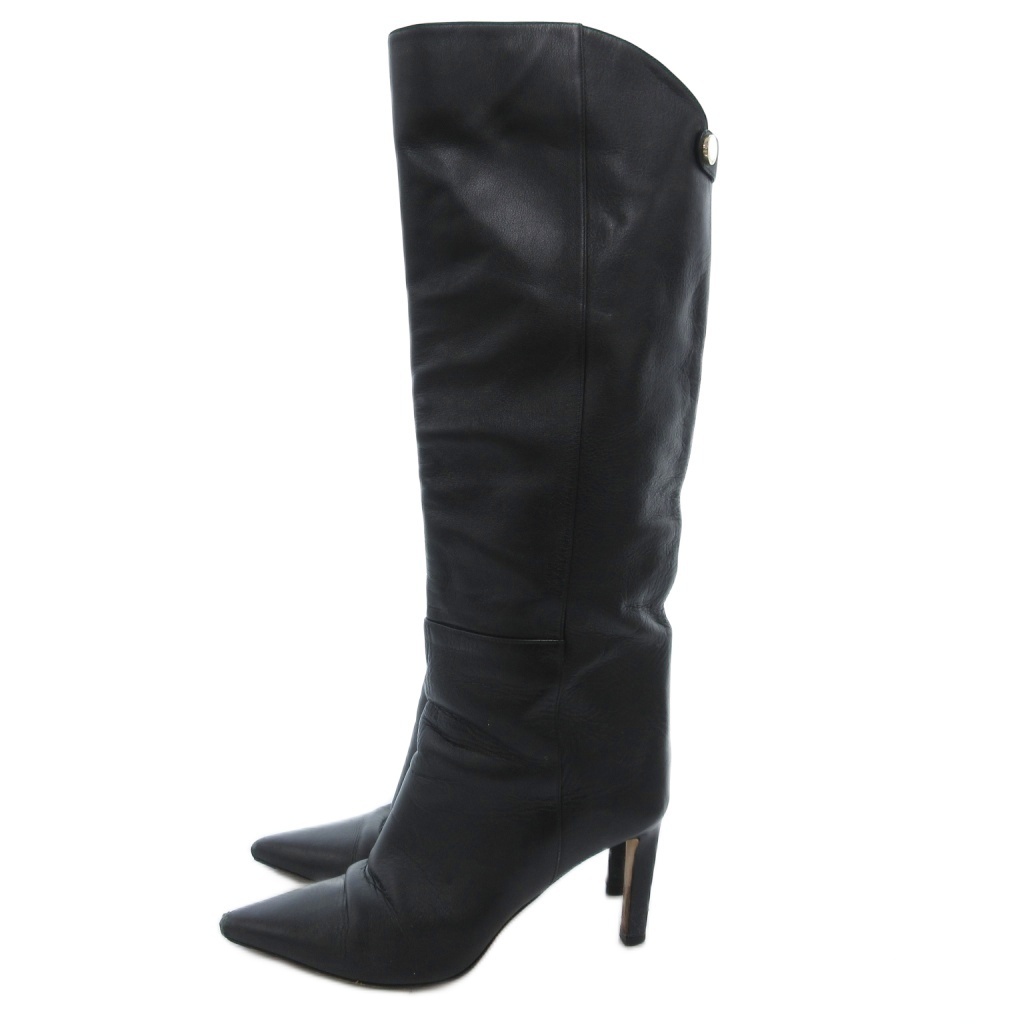 ジミーチュウ JIMMY CHOO ロングブーツ ポインテッドトゥ レザー ヒール 38 25cm 黒 ブラック /JS ■GY18 レディース