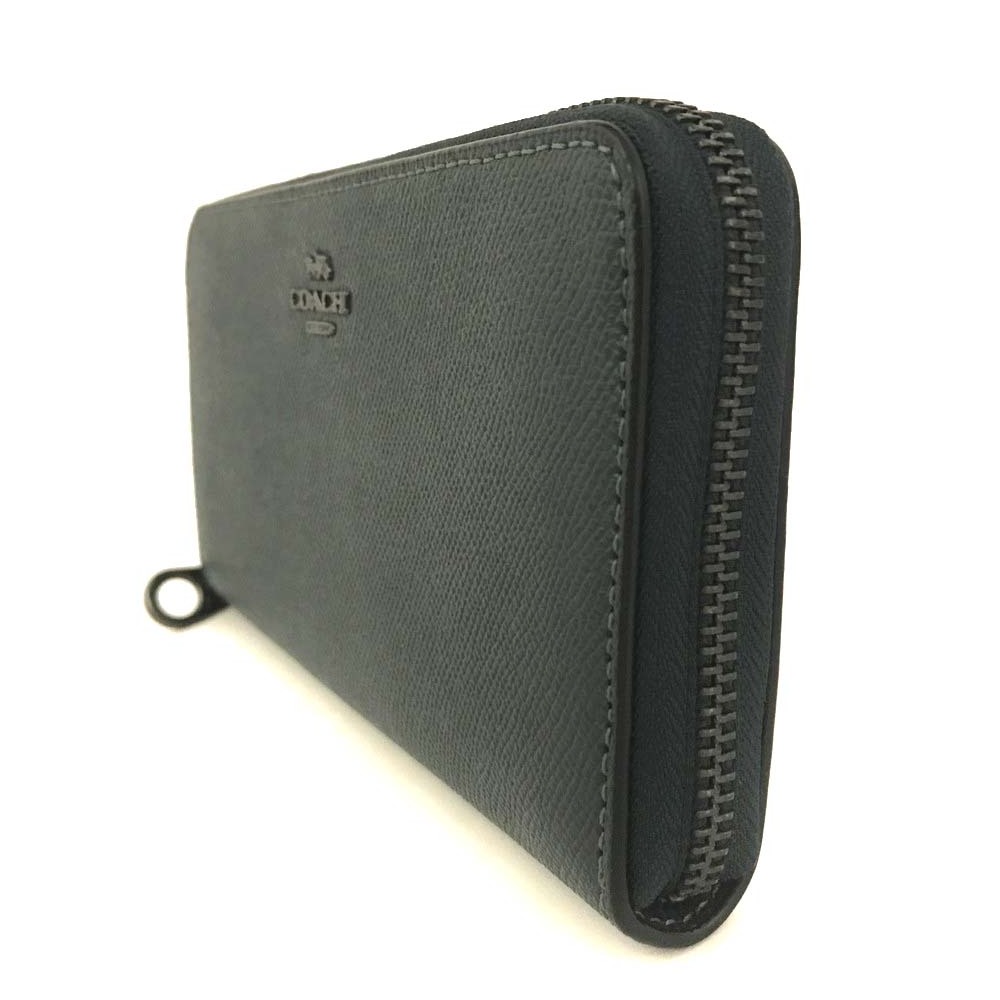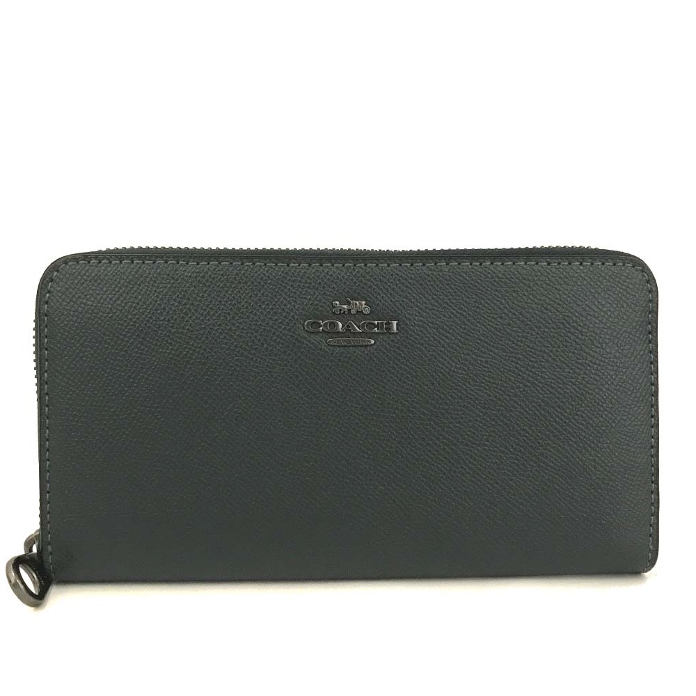 1円 未使用品 COACH コーチ レザー ラウンドファスナー 長財布 財布 ダークグリーン グリーン /ZX1213