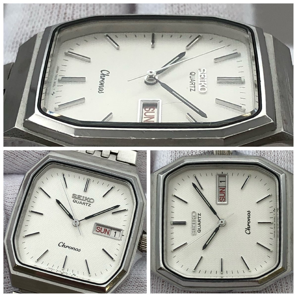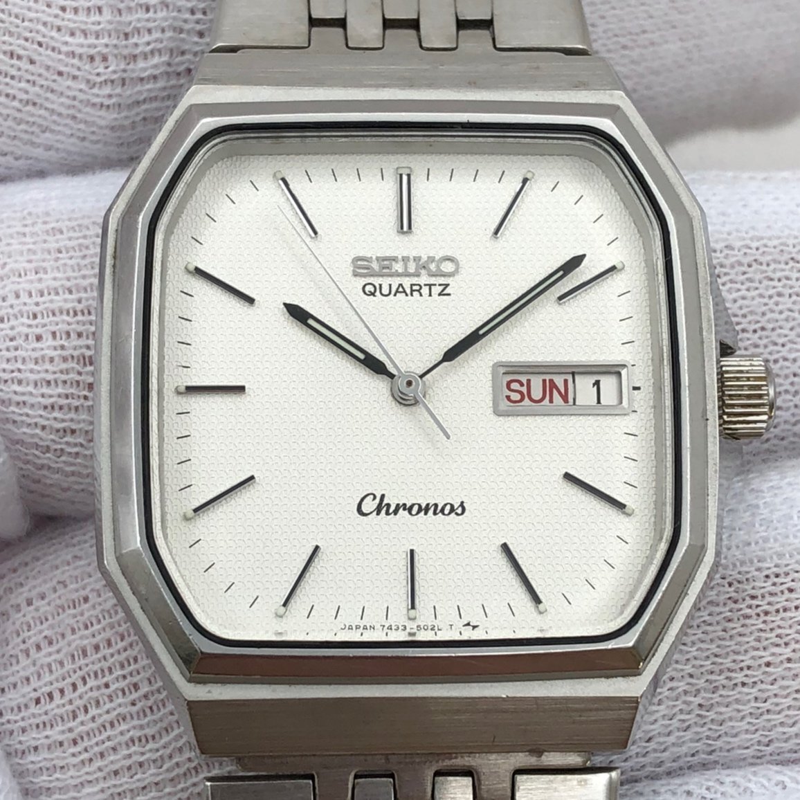 SEIKO/セイコー/Chronos/クロノス/7433-5010/3針/デイデイト/シルバーカラー/スクエア/クォーツ/メンズ腕時計/ジャンク/H024