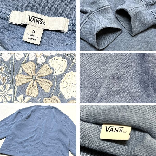 1点物◆バンズVANS花柄ロゴ刺繍スウェット古着SメンズレディースOKアメカジ90sストリート/スポーツUSブランド中古トレーナーくすみ青362130