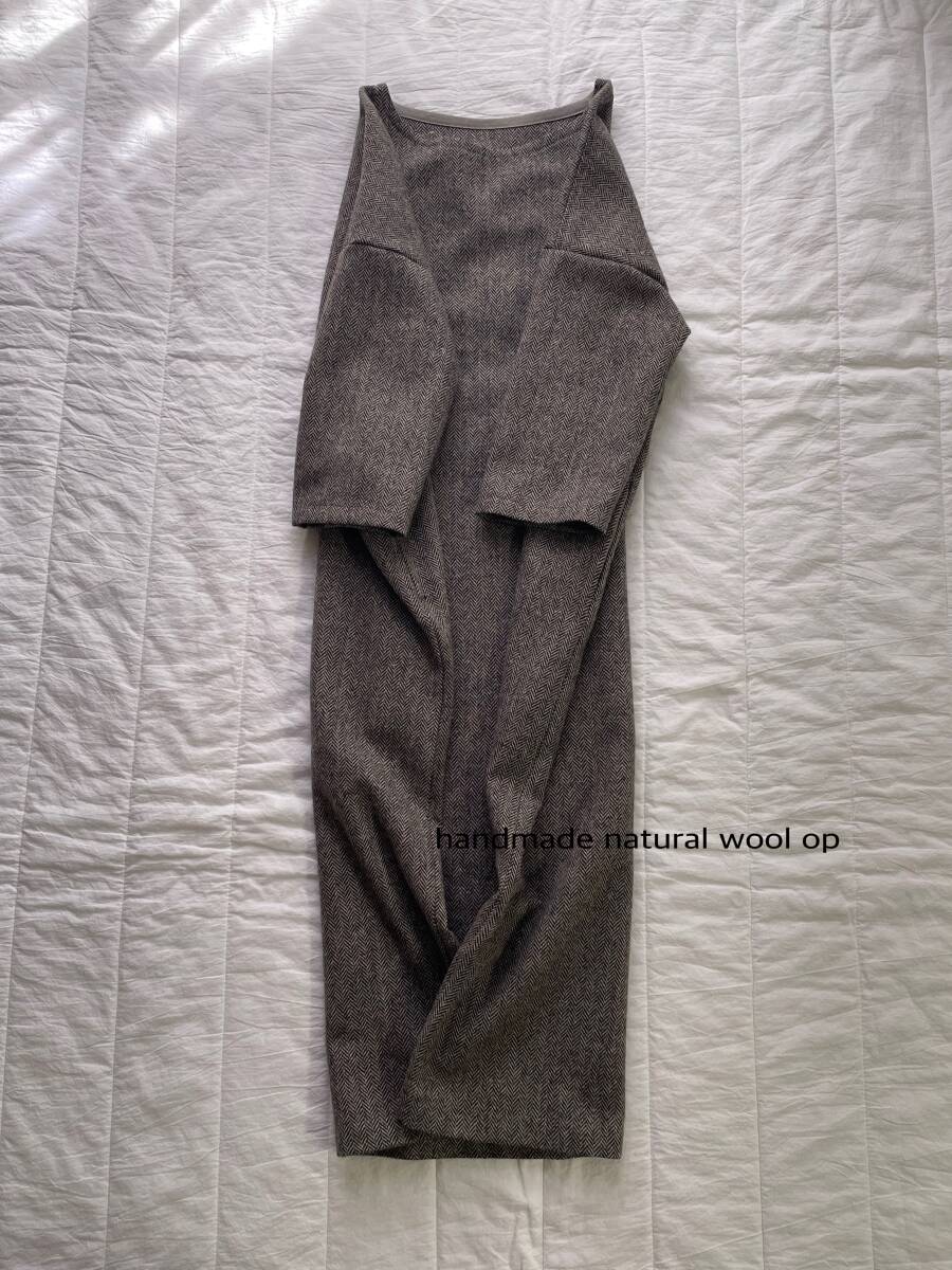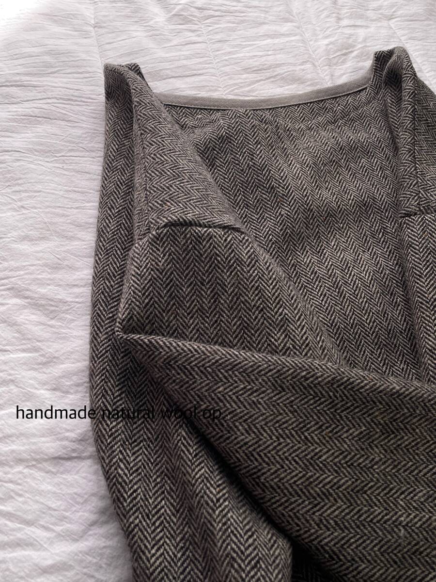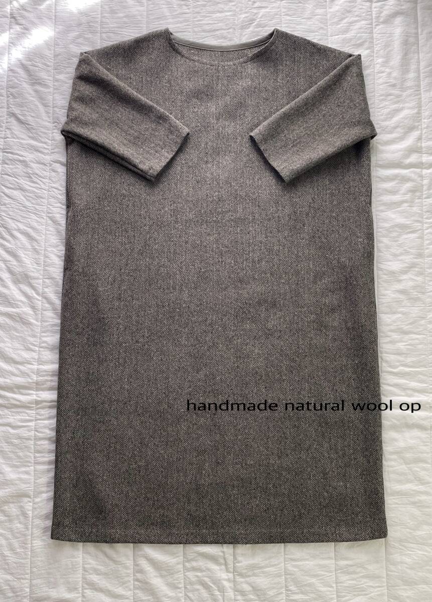 とてもシンプルなopに仕上げております。縫製前に軽く水通しをしております。素人のハンドメイドの為、多少の歪みズレ等を気になさる方の入札はご遠慮下さいませ。また、落札後のキャンセル&返品等はご遠慮下さいませ。