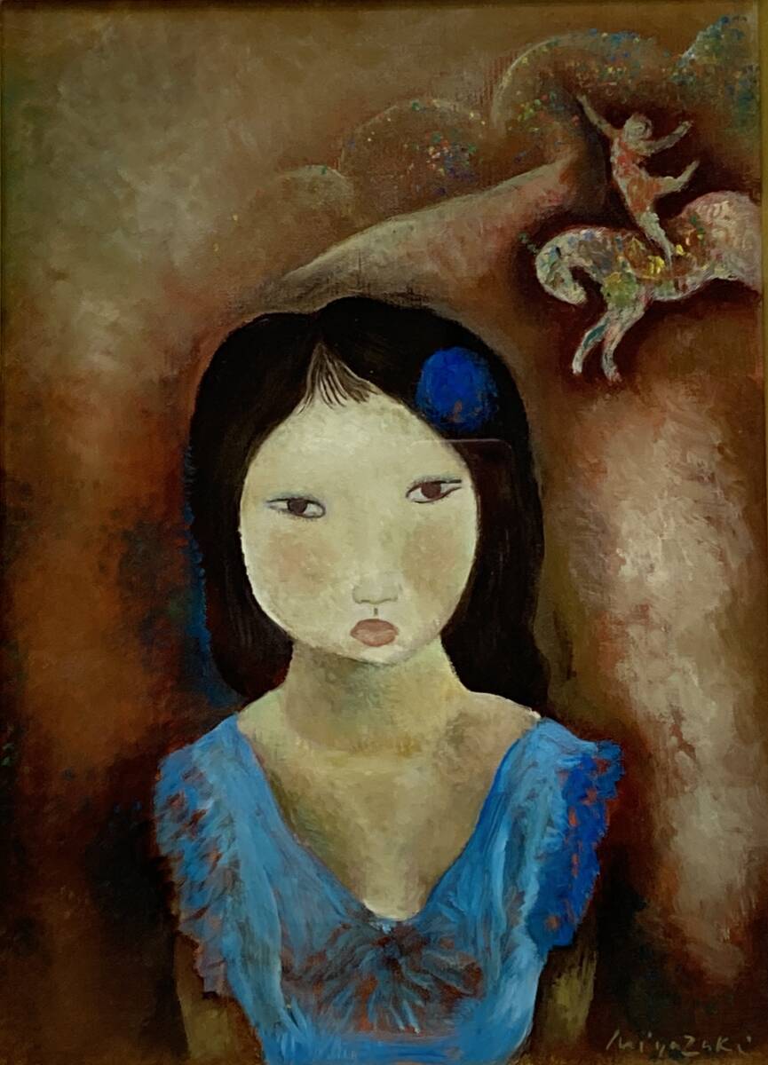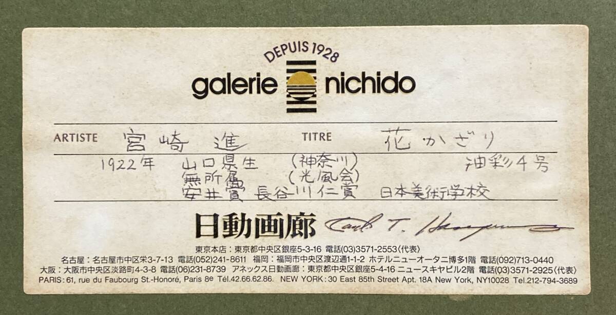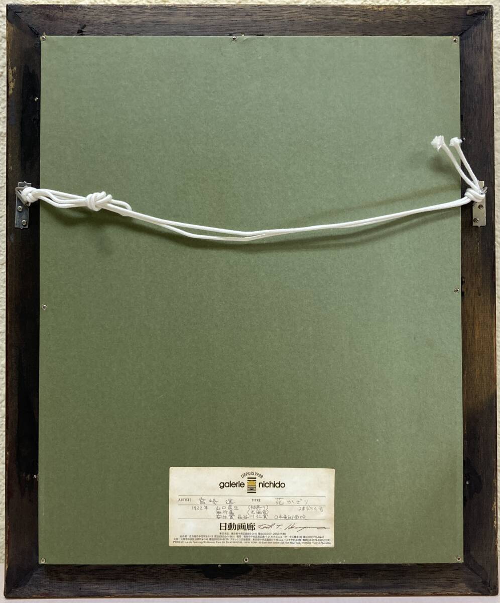 宮崎進「花かざり」キャンバスに油彩 4号 日動画廊取扱 多摩美術大学名誉教授 額装 真作保証