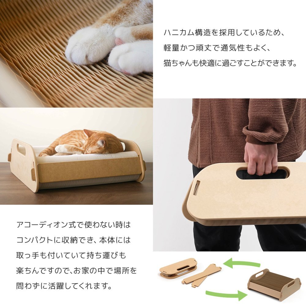 ハニカム構造を採用しているため、軽量かつ頑丈で通気性もよく、猫ちゃんも快適に過ごすことができます。
