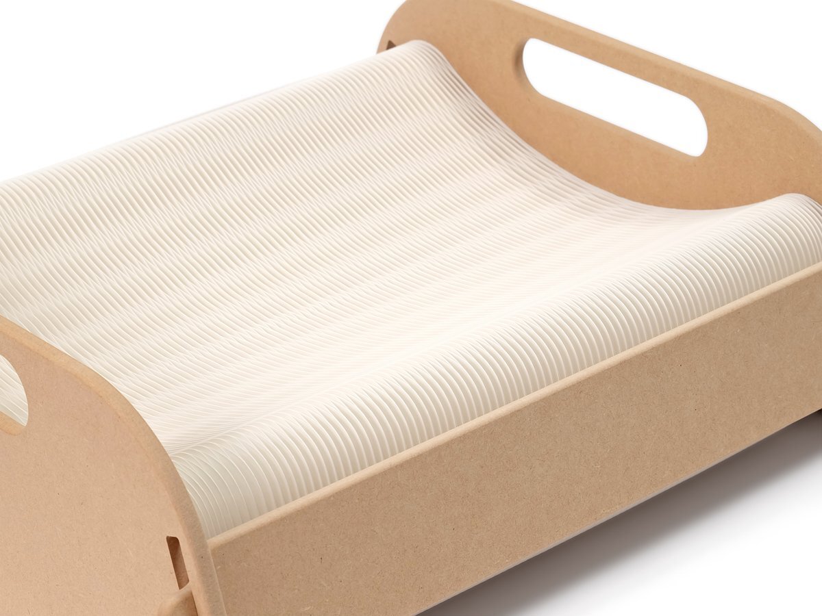 商品説明 ハニカムペーパーの蜂巣形状がワッフルの格子模様を思わせるデザインの猫用ベッドです。