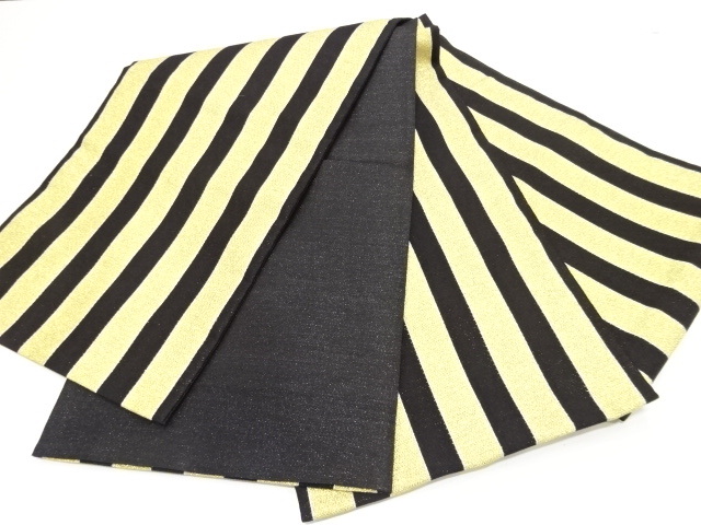 美品 縞模様織り出し 振袖用 袋帯 (AJG4K-027)