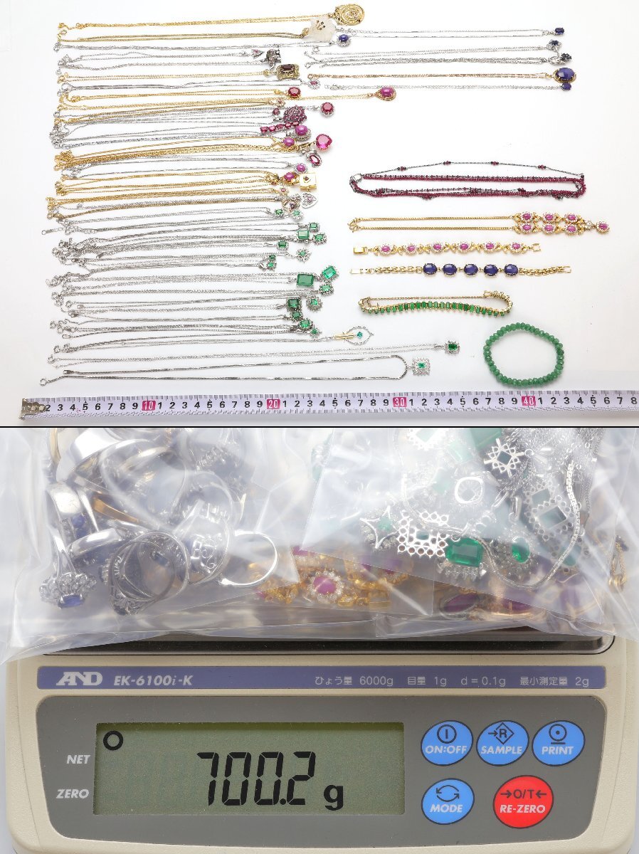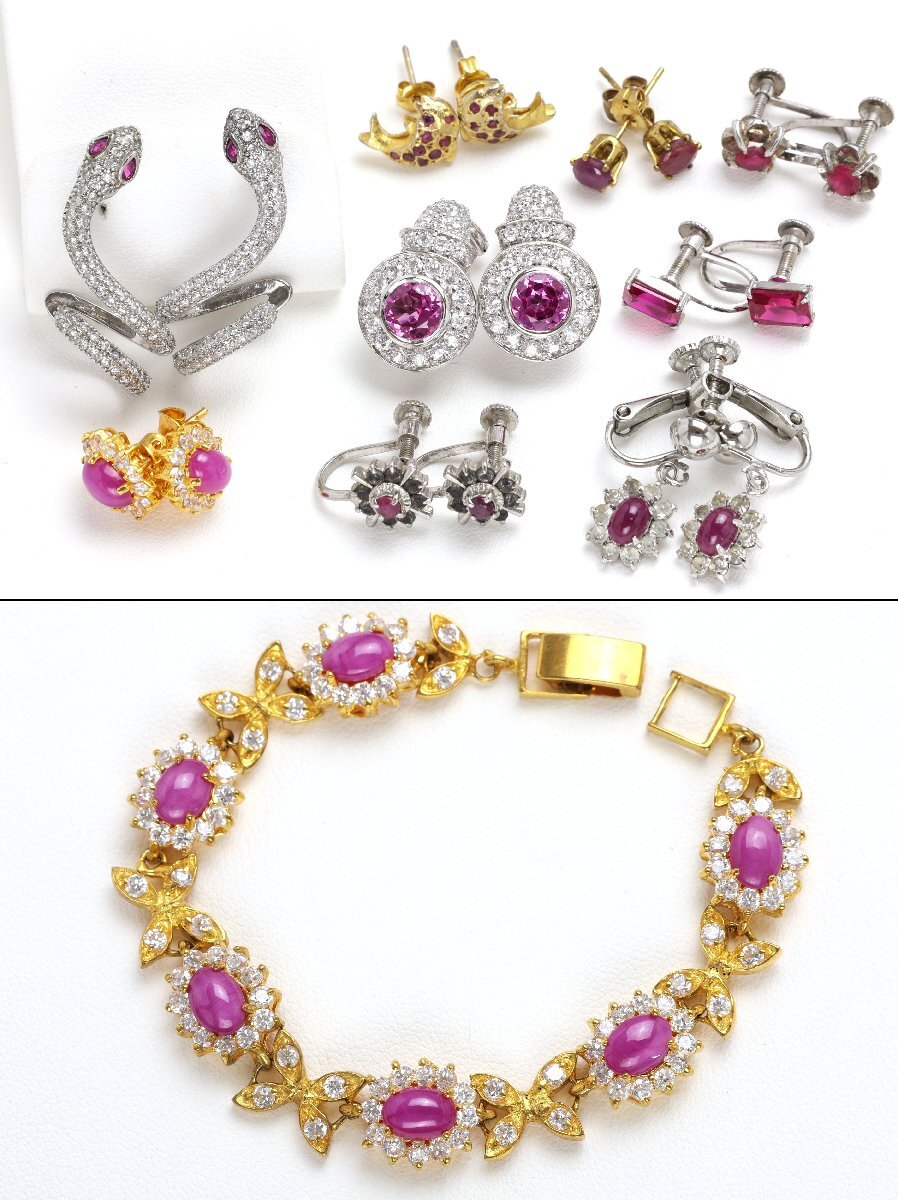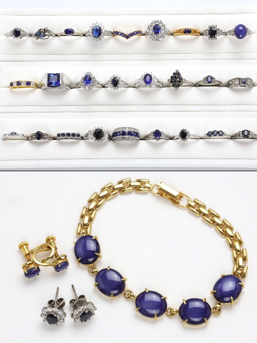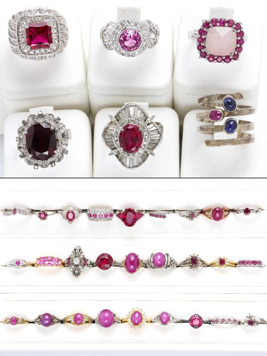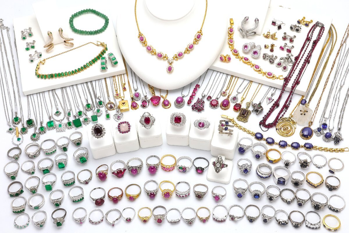 おたからや◆合成含浸ルビー/サファイア/エメラルドアクセサリー リング等(傷欠け石取れ有)《製品で約640g》【Z-YA02508】