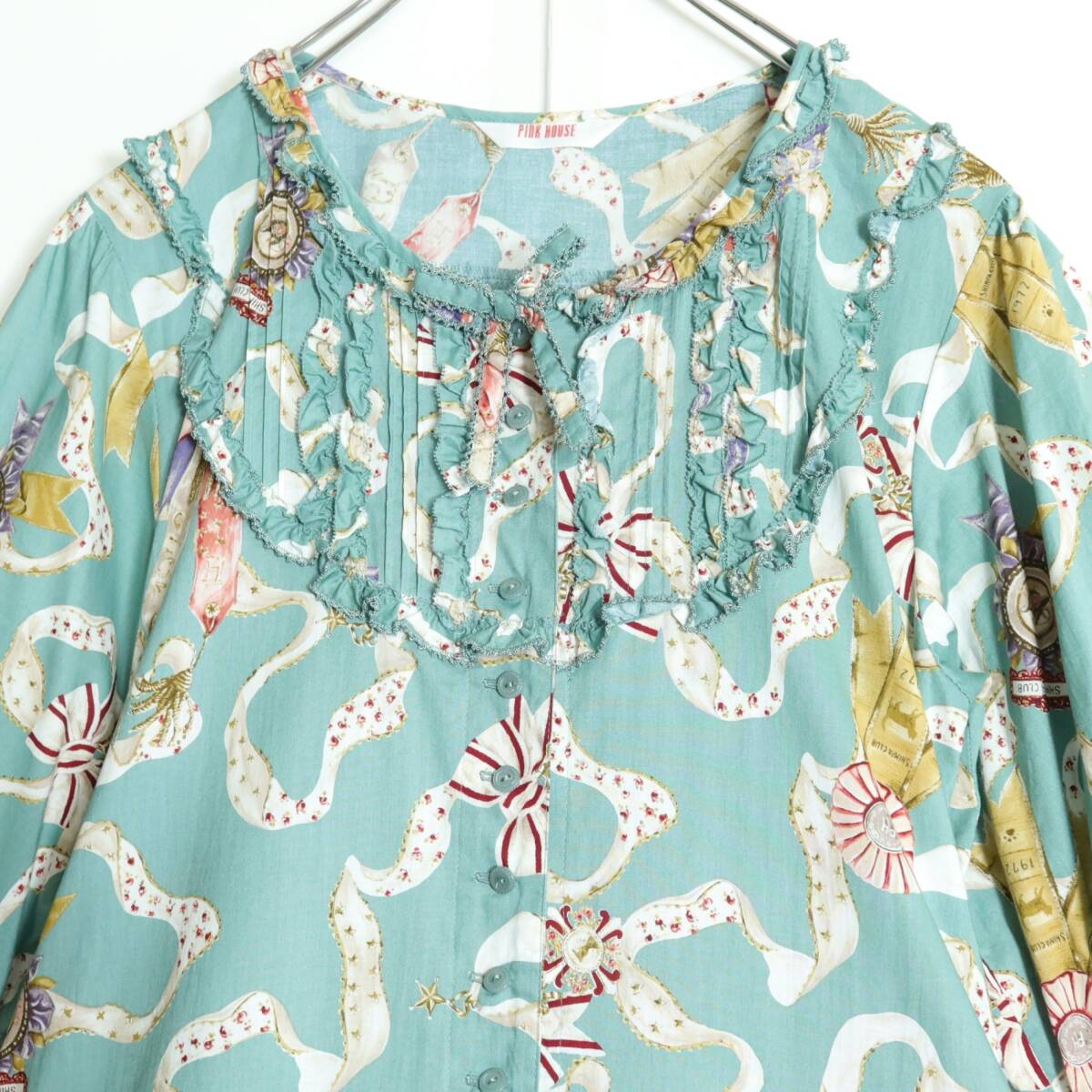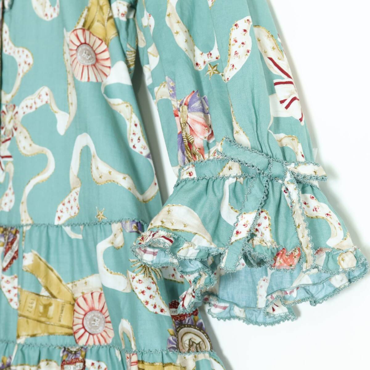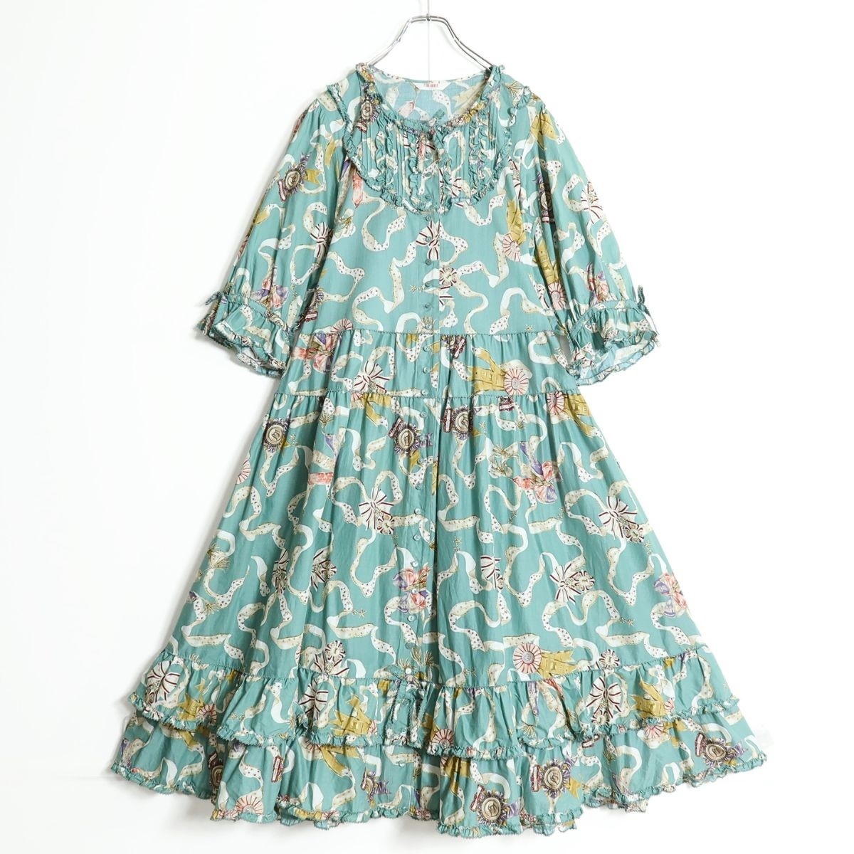 | 商品説明 | 【実寸約】肩幅38袖丈42バスト100着丈120(cm) 【サイズ表記】 なし。実寸をご参照くださいませ。 【素材】 綿100% 【状態】使用感少なめの美品 【デザイン】グリーン系 リボンと紋章柄が大人可愛い五分袖ワンピースです。 Aラインのふんわりフォルム♪ ピンタックやフリル、ピコレース、共布リボンなど、ピンクハウス定番の飾りがいっぱい♪ ウエストにリボンベルト付き。 フロントは上から下までボタンで開くデザインです。 これ一枚でもレイヤードでもロマンティックコーデに大活躍する優秀アイテム! 薄手/ポケットあり/ |
