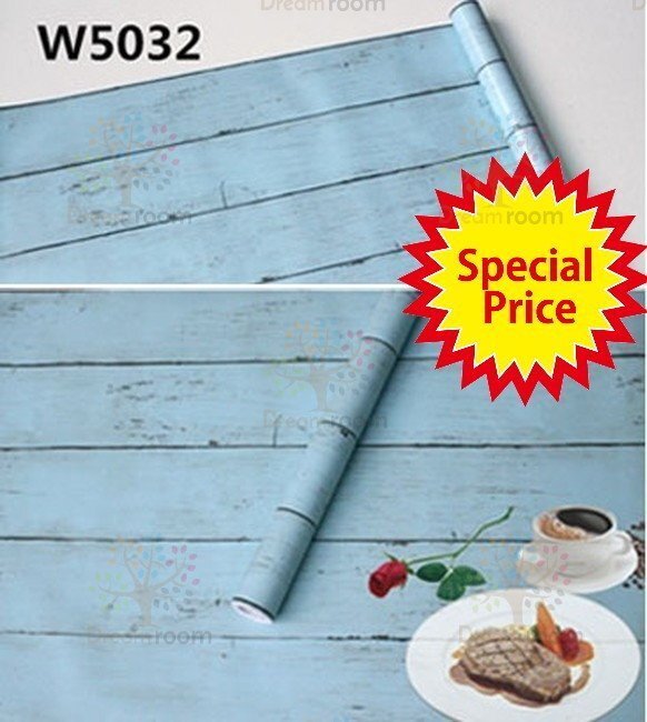 木目調 ブルー 地中海 w5032 壁紙シール アンティーク 木目 リメイクシート 板 柄 ウォールステッカー 防水 45cm×10m はがせるタイプ