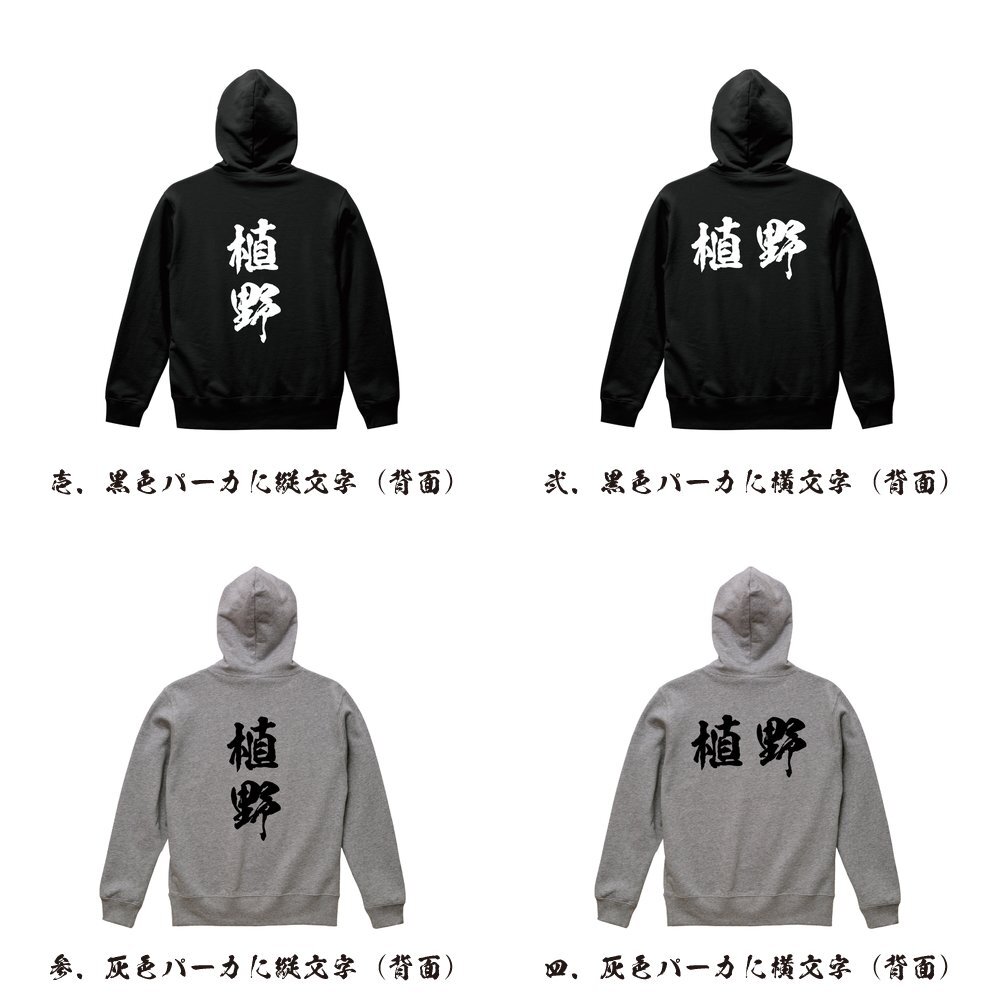 植野 書道家が書く デザイン フルジップ パーカ 【 名字 】 メンズ レディース キッズ