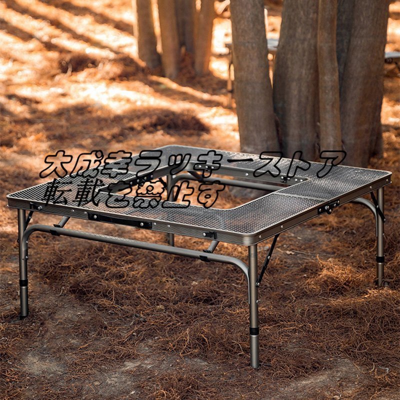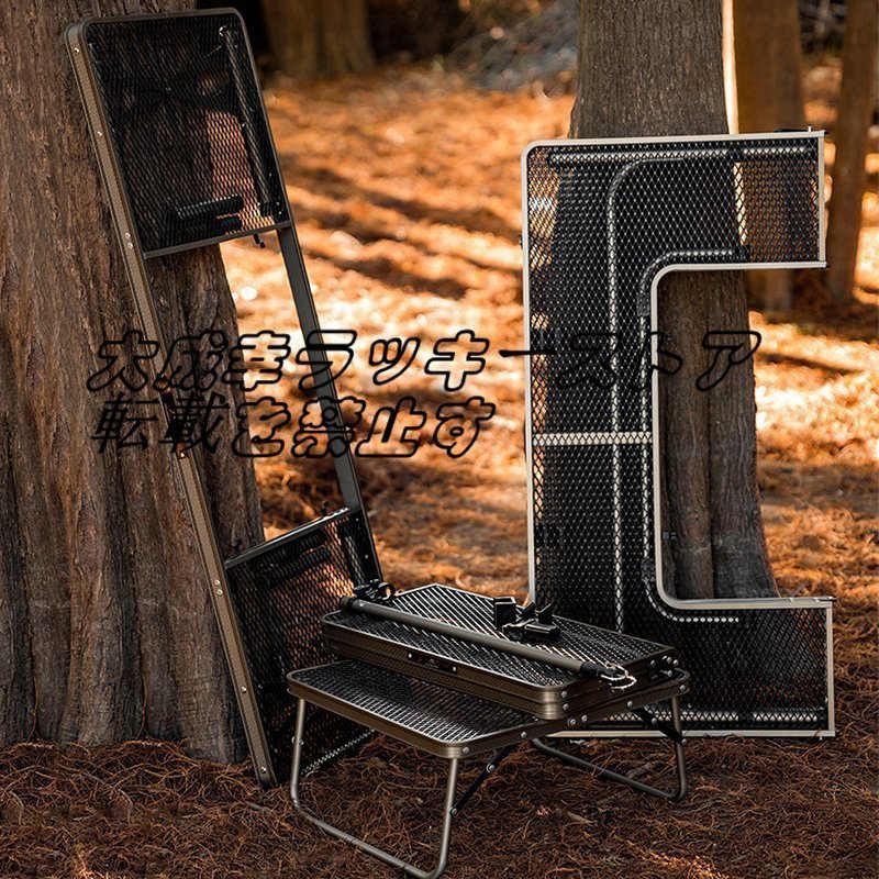 アイアン囲炉裏テーブル メッシュ 焚き火テーブル 着脱式センターテーブル付き 2つ折りコンパクト収納 BBQアウトドア ブラック z1224