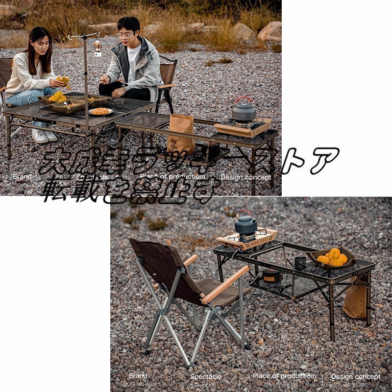 ②チェアに座りながら、たき火やBBQが楽しめるテーブル。 放熱性に優れた丈夫なスチールメッシュ天板を採用し、中央にたき火台やグリルを設置することで、チェアに座りながらたき火やBBQを楽しめる。