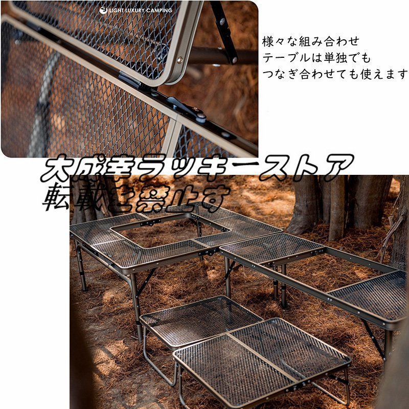 アイアン囲炉裏テーブル メッシュ 焚き火テーブル 着脱式センターテーブル付き 2つ折りコンパクト収納 調理ツール BBQアウトドア ブラック