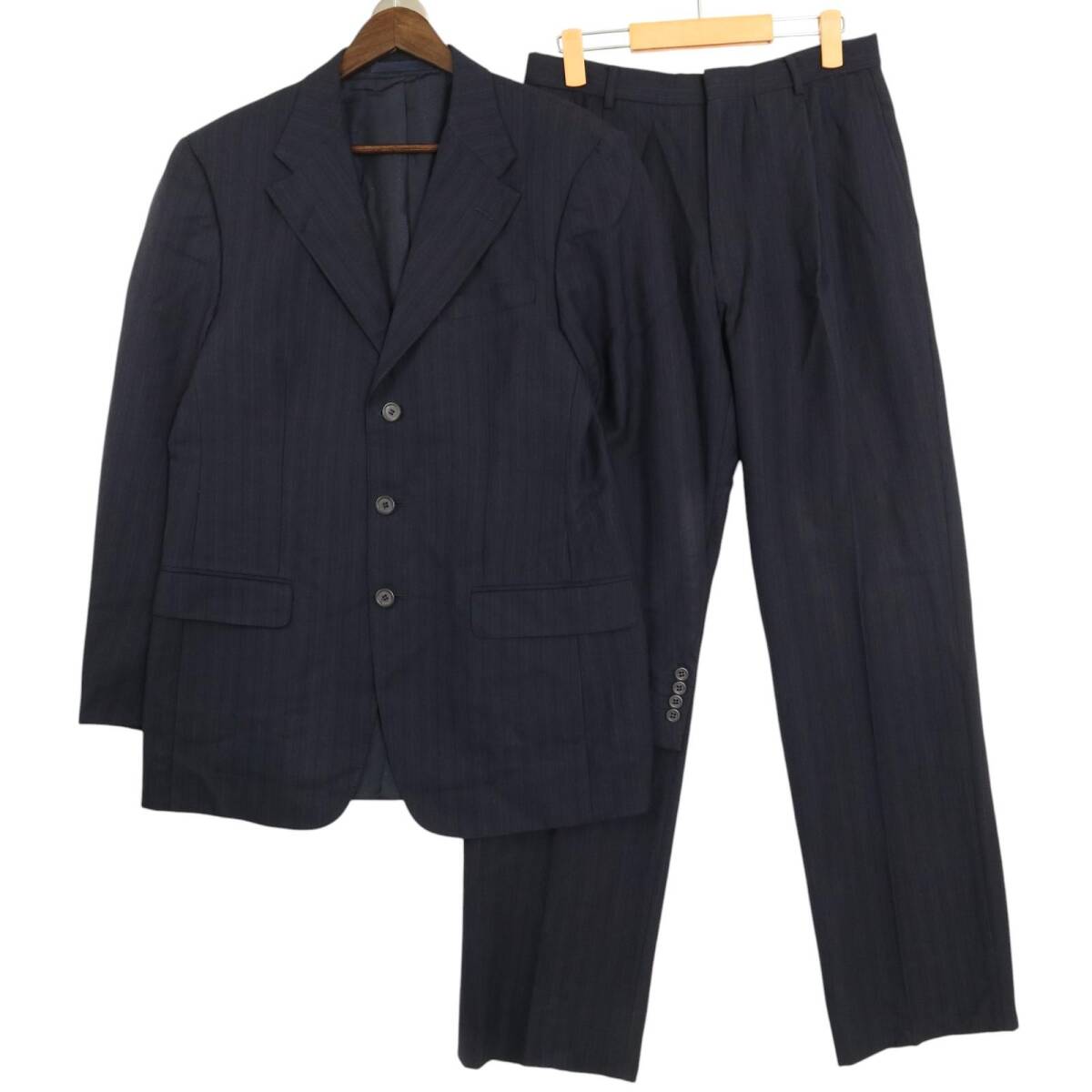 【商品管理番号】 A3874 【ブランド】 VERSACE/ヴェルサーチ 【サイズ】 50 R 【実寸サイズ】 肩幅:約47cm 着丈:約77cm 身幅:約55cm ウエスト:約76cm 股上:約29cm 股下:約81cm わたり幅:約35cm 裾幅:約23cm 袖丈:約64cm 【主な素材】 表地 : ウール 裏地 : 13946 【色】 ネイビー 【仕様】 【状態】 特記事項:使用感あり |