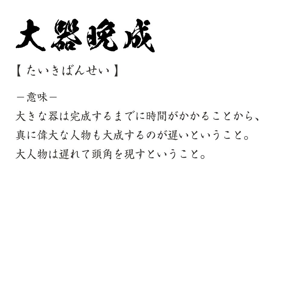 大器晩成 (たいきばんせい) 書道家が書く プリント Tシャツ S M L XL XXL 120 130 140 150 G-S G-M G-L 【 四字熟語 】