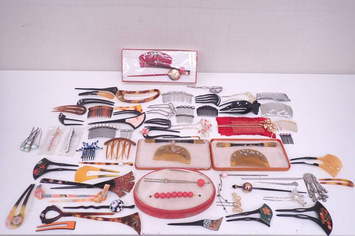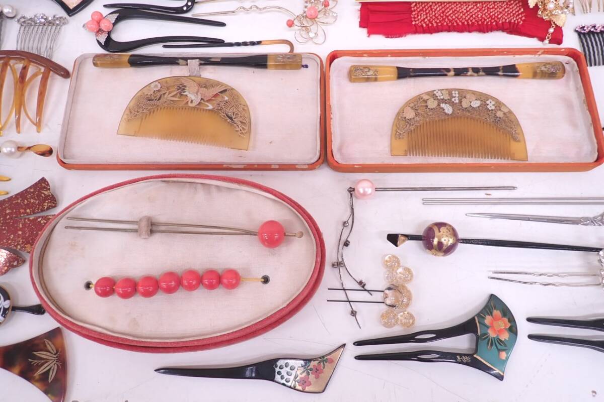 和装小物 作家物 新山作 かんざし 髪飾り 本鼈甲 螺鈿 櫛 アンティーク レトロ 本べっこう 本べっ甲 玉かんざし 根掛け まとめ | ||||