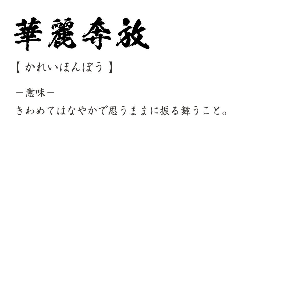 華麗奔放 (かれいほんぽう) 書道家が書く プリント Tシャツ S M L XL XXL 120 130 140 150 G-S G-M G-L 【 四字熟語 】