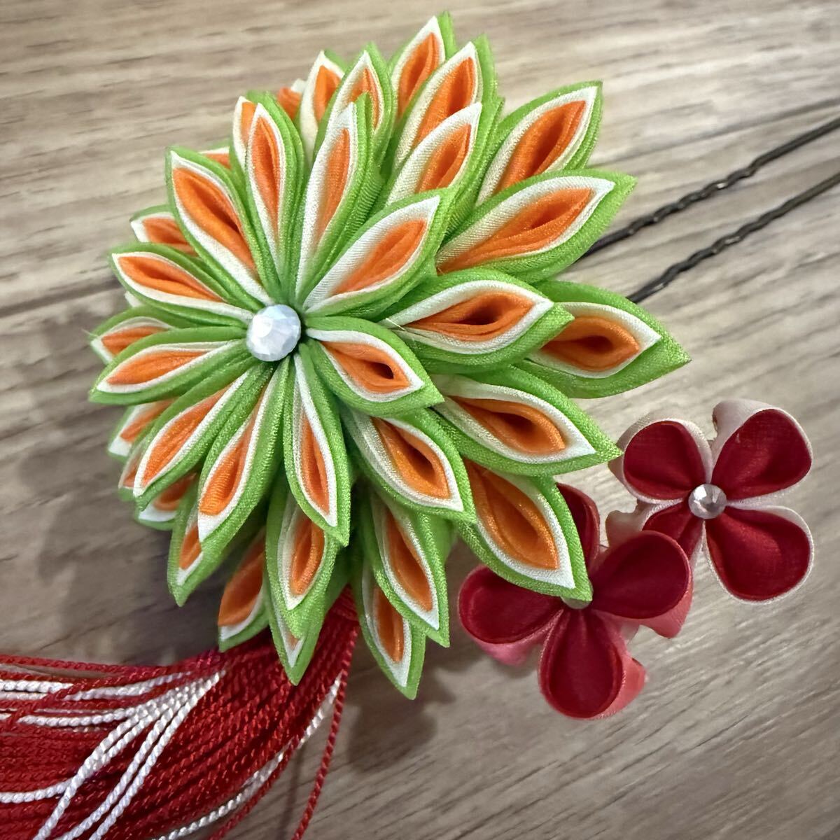 娘の七五三で購入した、つまみ細工の髪飾りです。