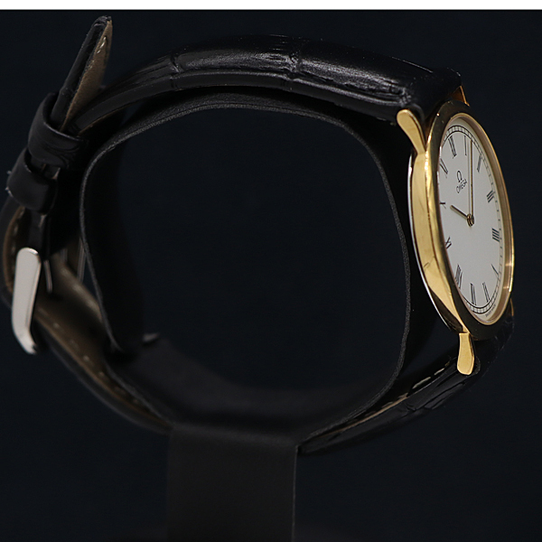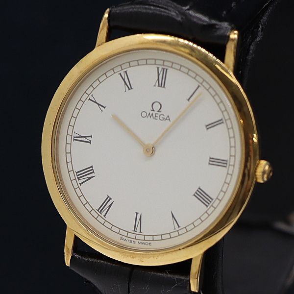 1円 稼働 良品 オメガ デビル QZ アイボリー文字盤 メンズ腕時計 0277200 9BGT KMR