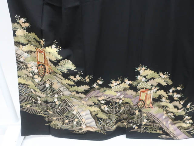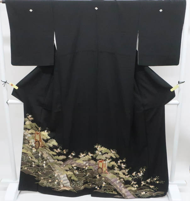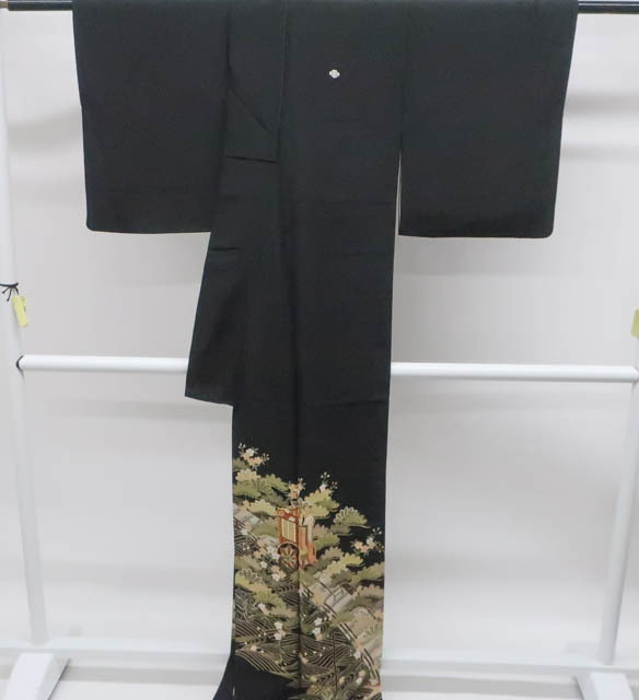 リサイクル商品のため、右脇後ろに糸の緩み、比翼や衿など所々薄汚れがございますがご着用いただけると存じます。 地色は黒です。 1枚目の画像が近いお色かと思われます。 素材は正絹です。 日本国内から発送いたしております。 発送後は追跡番号をお知らせいたします。 スタッフによる手作業での検品採寸済み。 |
