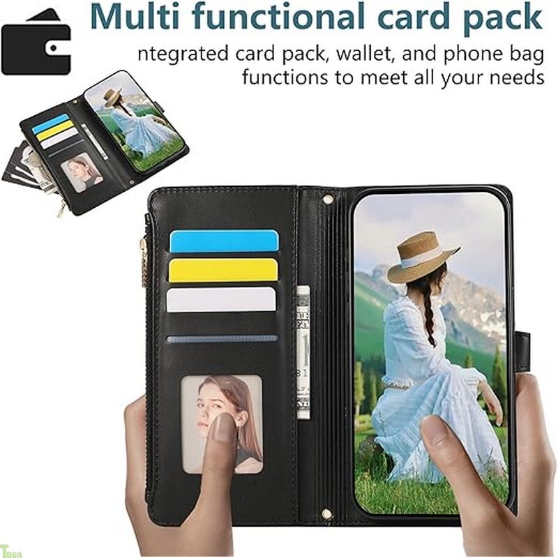 ブラック 手帳型 刺繍 高品質 PU レザー ストラップ付き エクスペリア Xperia 10 VII 保護 財布型 スタンド機能 カード収納 ケース カバー