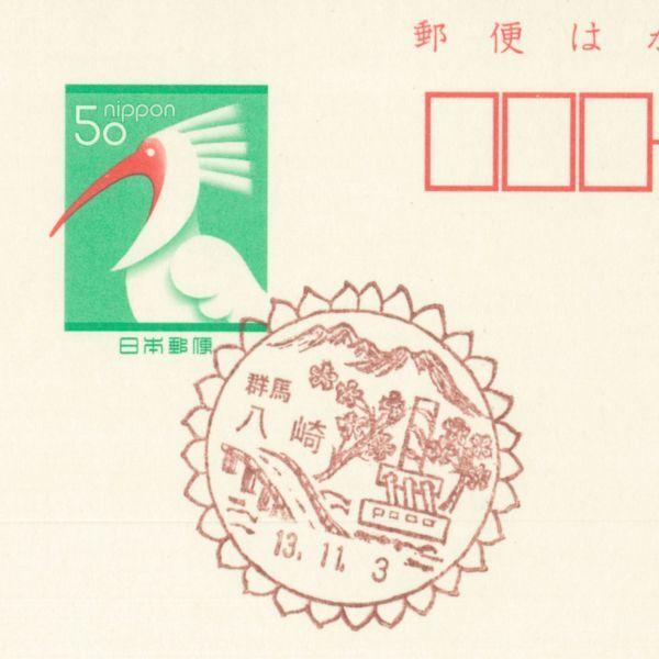 風景印☆初日☆群馬・八崎・H13.11.3・変形枠