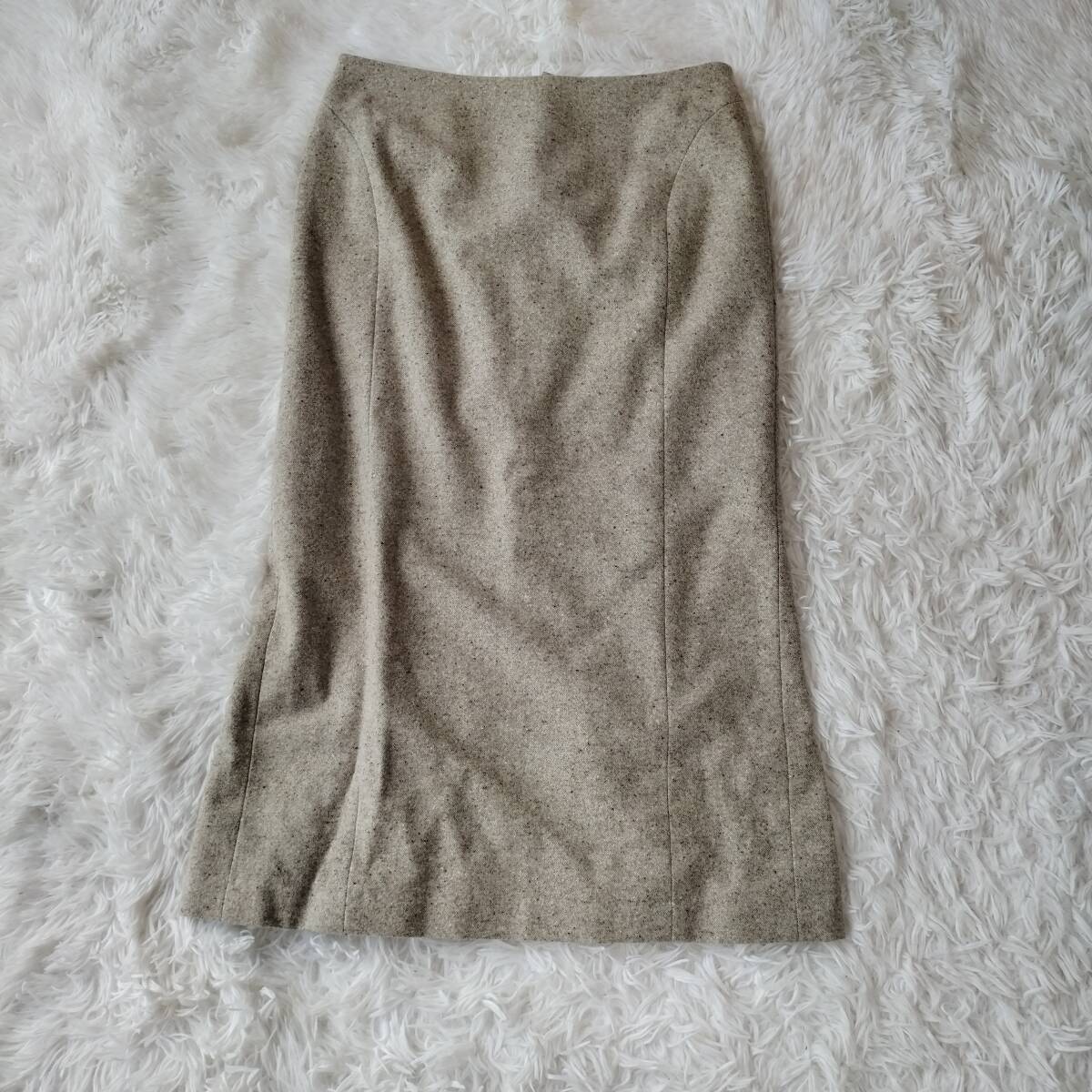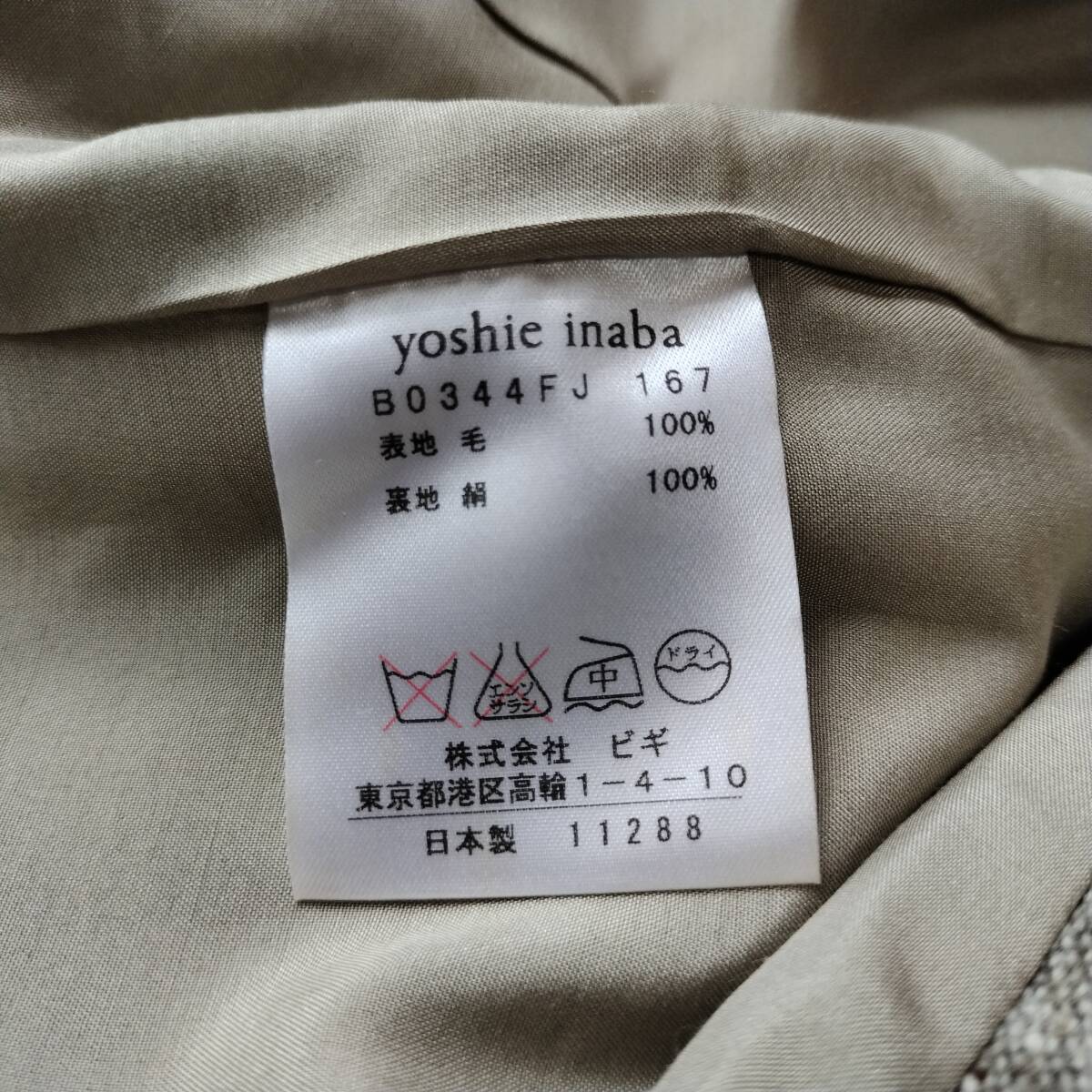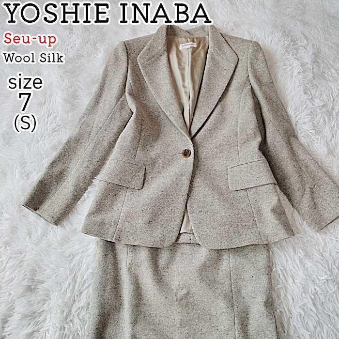 【美品】ヨシエイナバ セットアップ スカートスーツ ツイード ウール シルク グレー 7 S 1つ釦 肩パット yoshie inaba【J027】