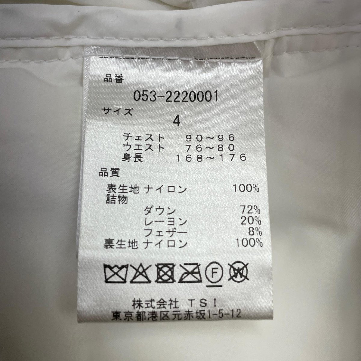 ●素材追記 詰物:ダウン72% レーヨン20% フェザー8%