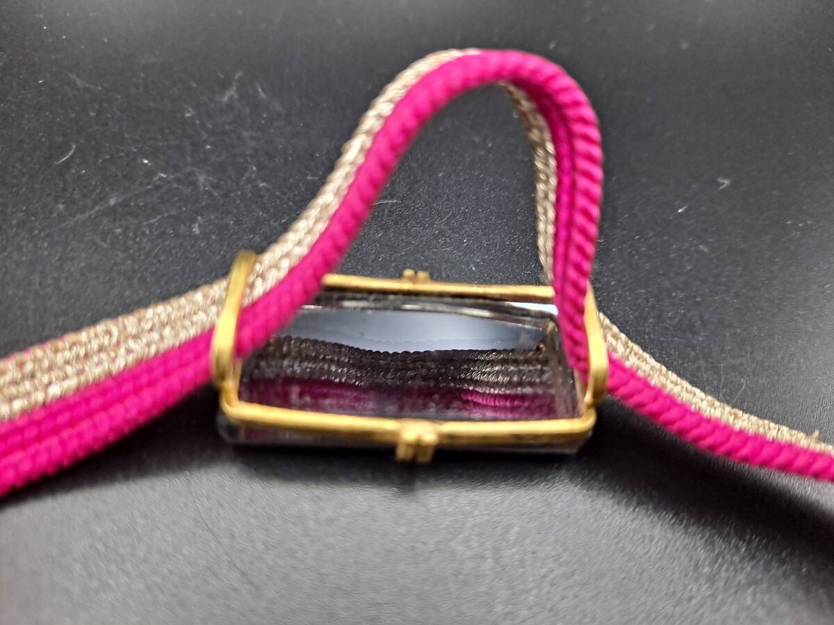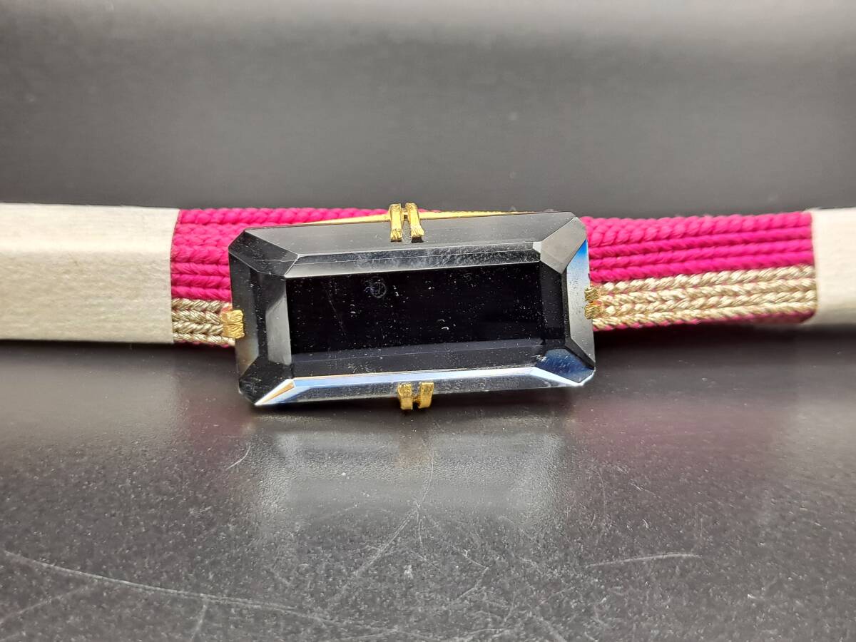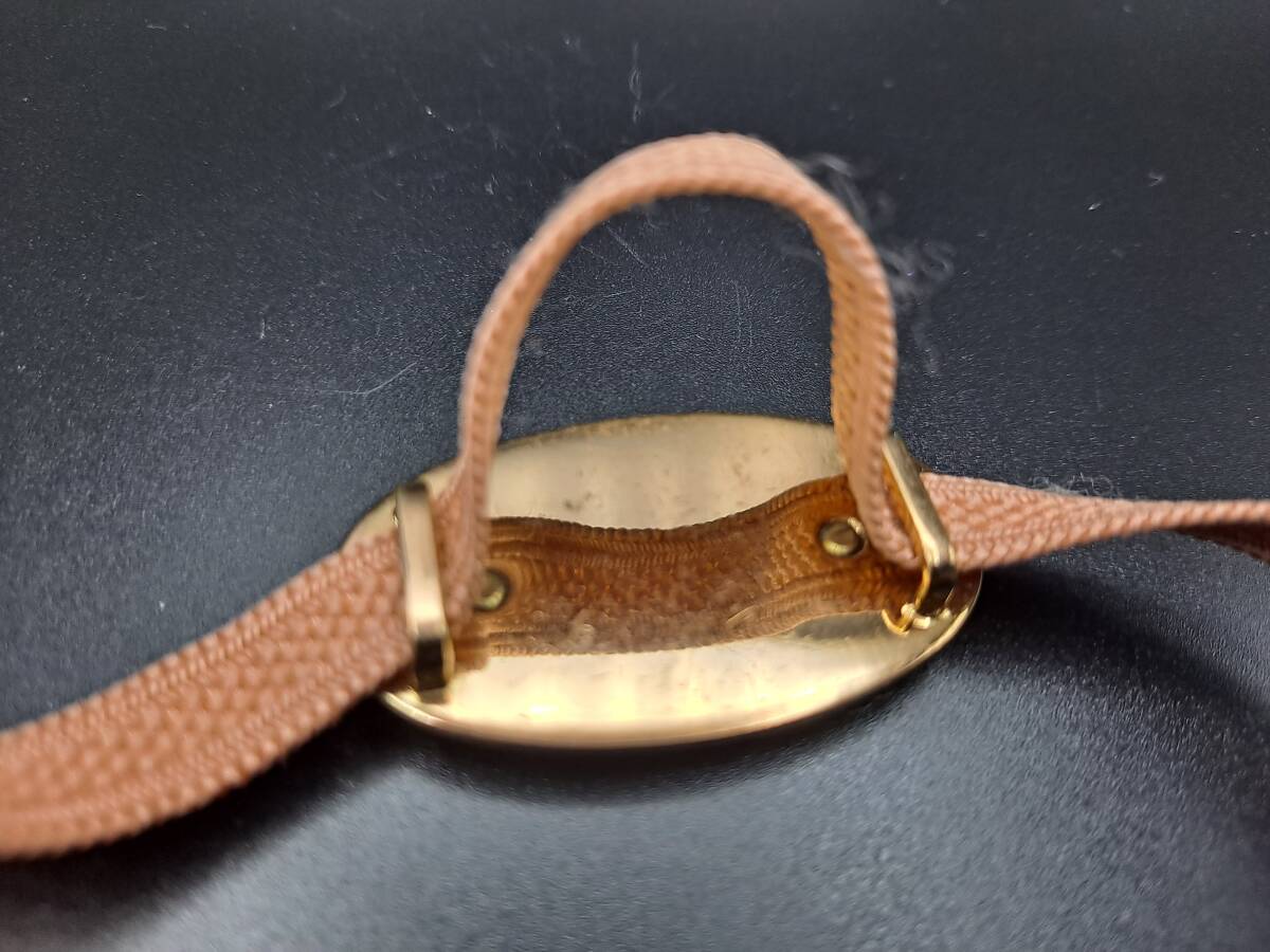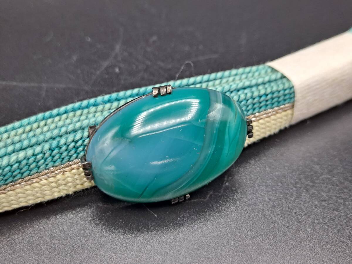 | 【12】アンティーク・ヴィンテージ黒曜石?「翁と扇」意匠黄楊・「銀杏」象嵌・青瑪瑙帯留め 帯締め三分紐付4点 | ||||