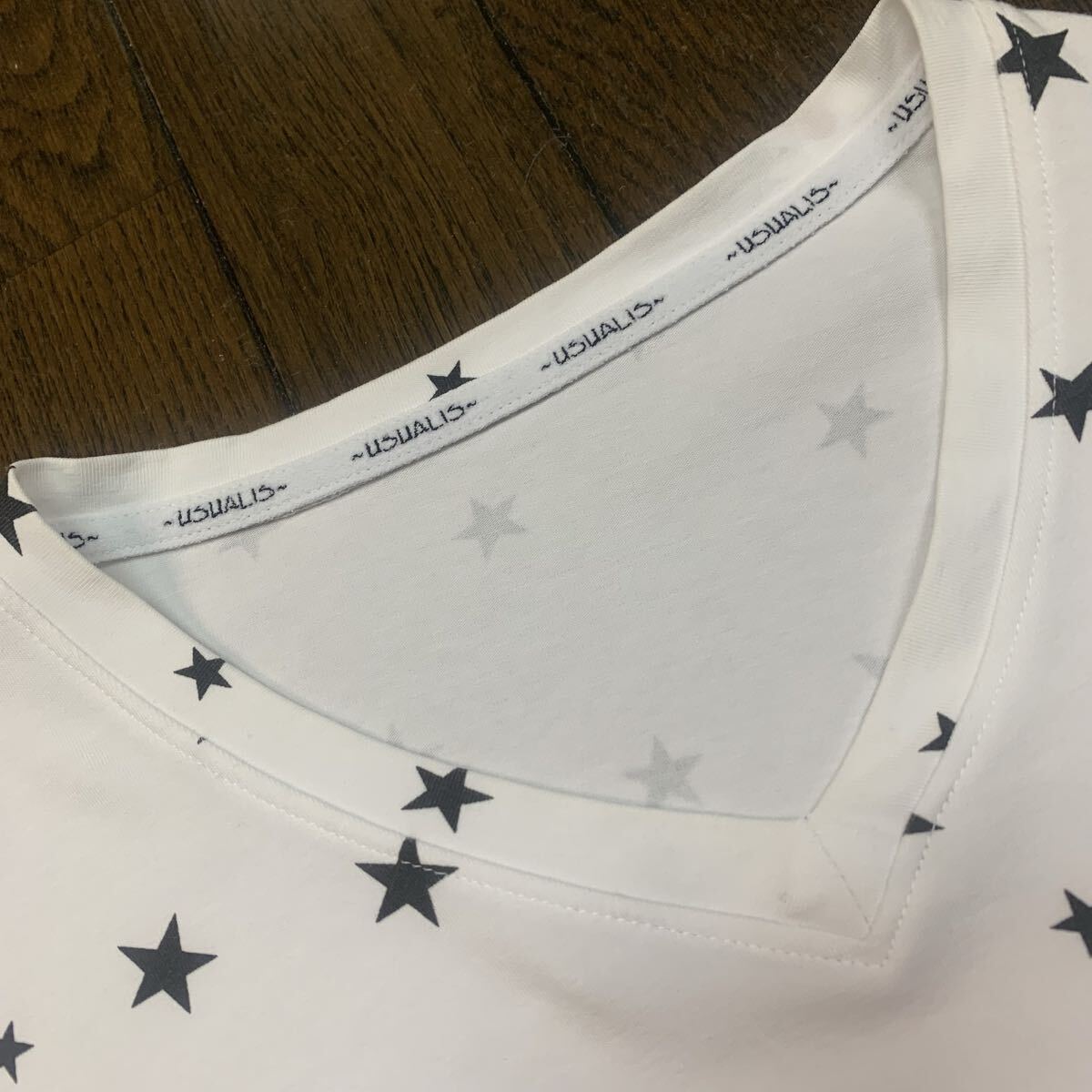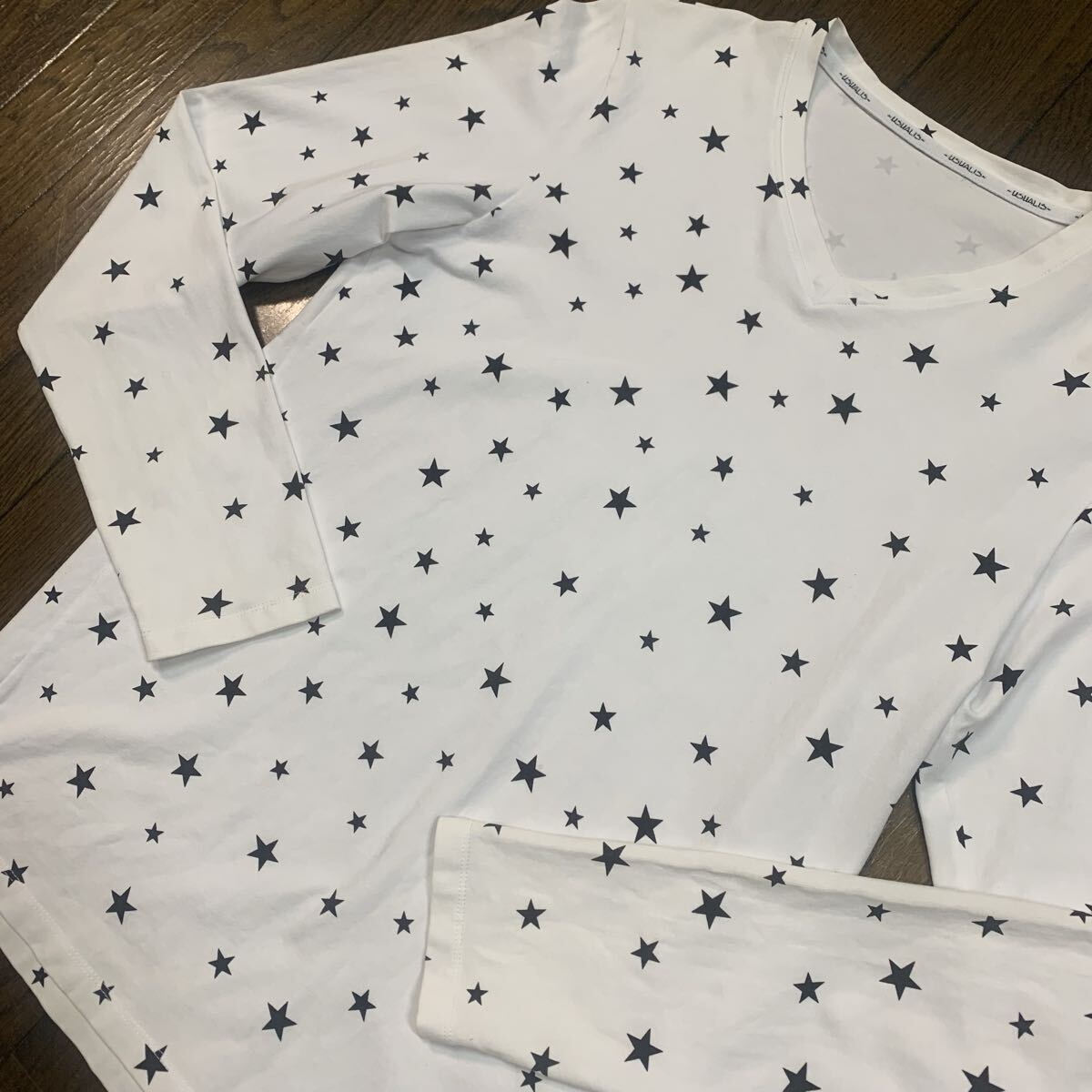 美品 イタリア製 ウザリス ロングTシャツ 白/星柄 オールストレッチ になります