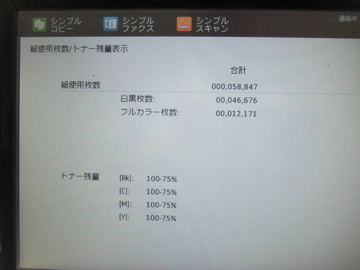 | 動作状態 | フルカラーコピー | 正常出力OKです |