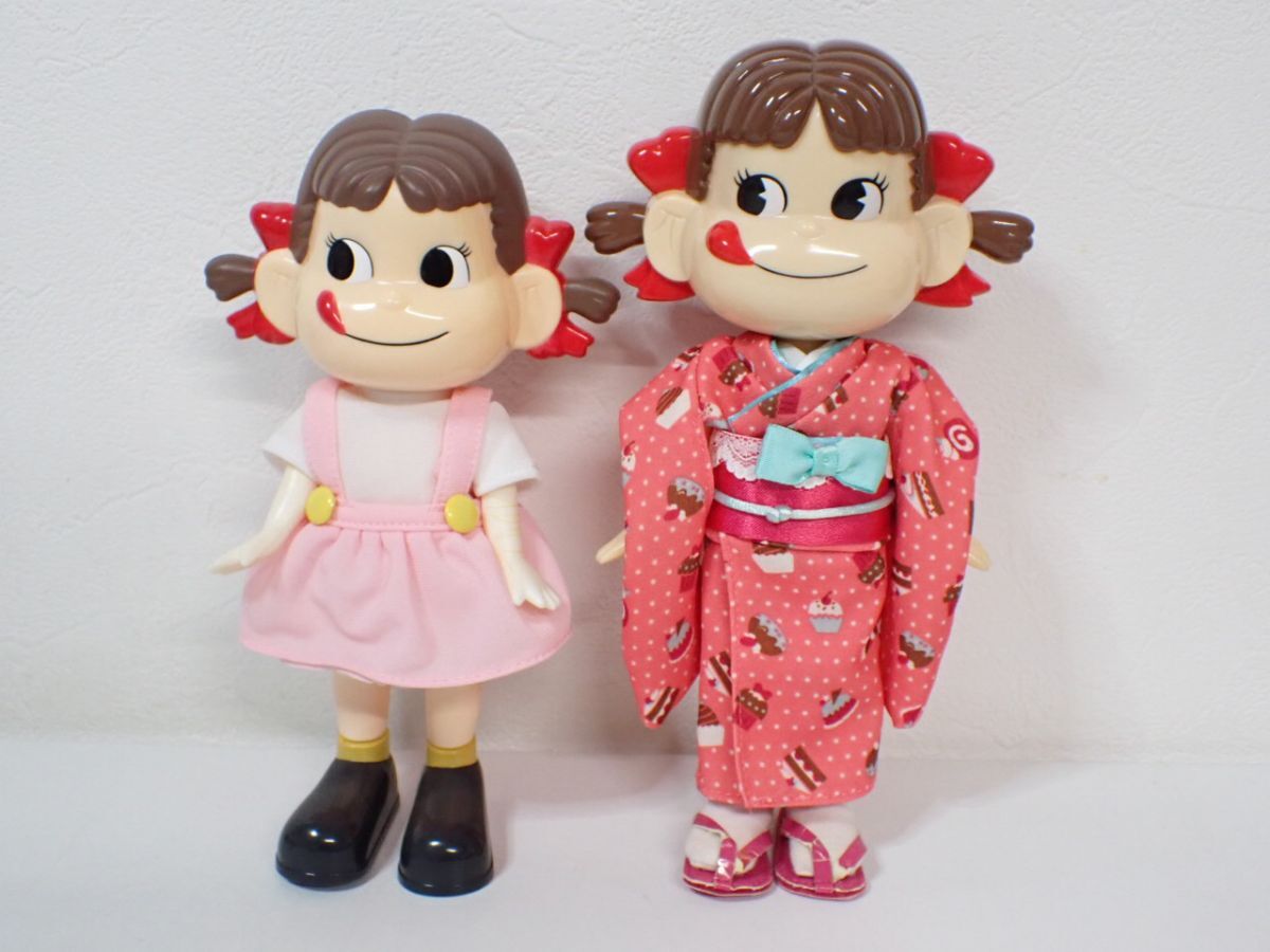M469/8F〇不二家 FUJIYA ペコちゃん 2体セット 着せ替え人形 着物 振袖 中古品〇
