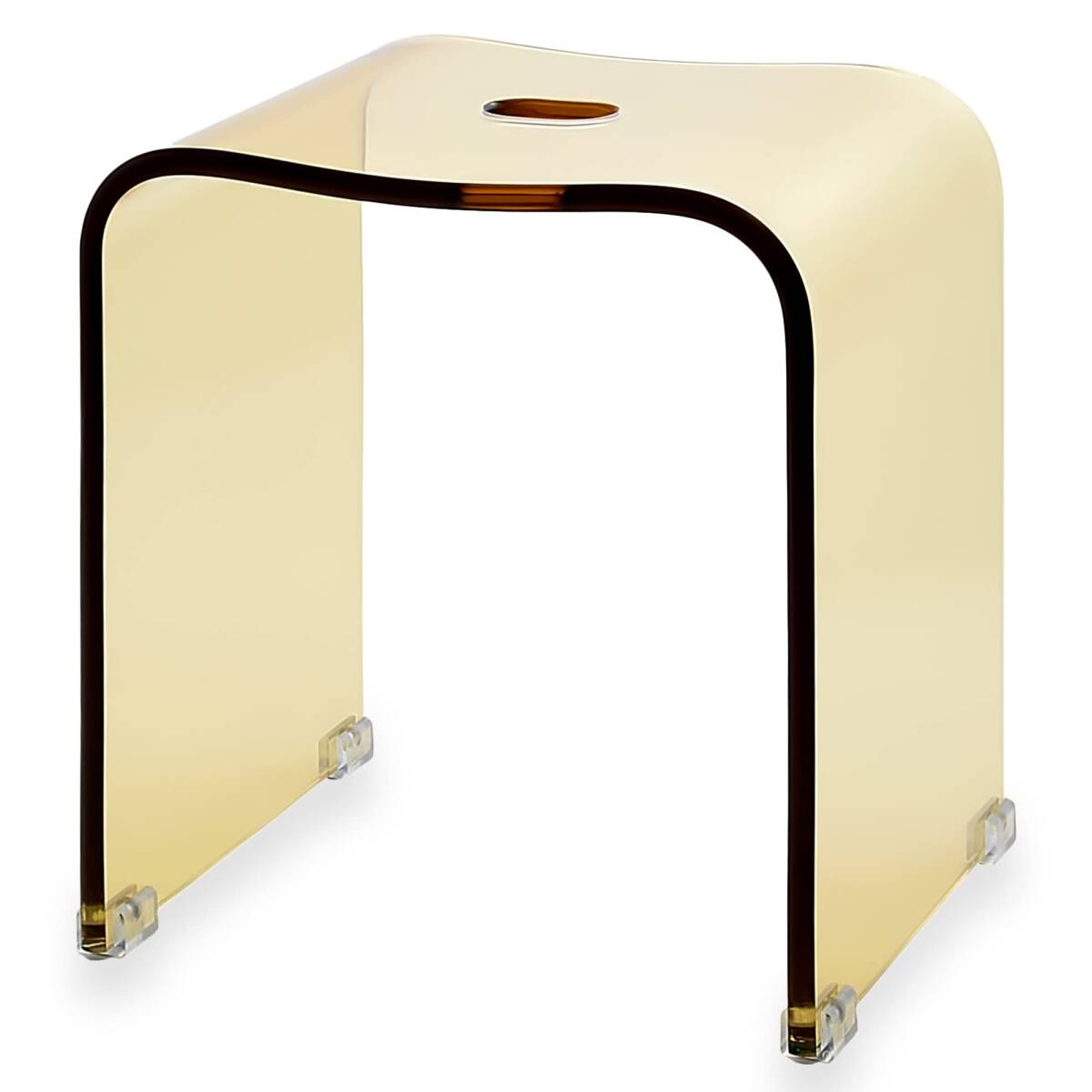 イスは、つなぎ目のまったくないアクリルの一枚板で作られています。厚みはしっかりと12ミリ。ゆったりした座面のカーブが快適な座り心地をお約束します。