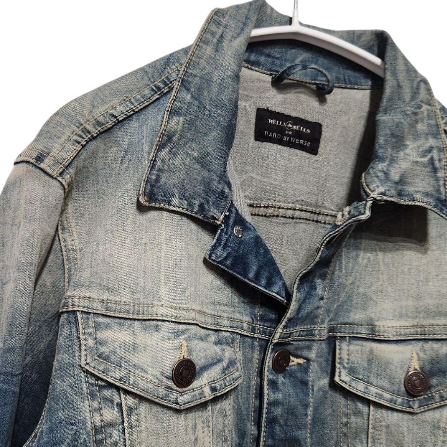 HELLS BELLS ヘルズベルズ nano・universe ナノユニバース デニムジャケット Gジャン ストレッチ 加工 M アメカジ ヴィンテージ