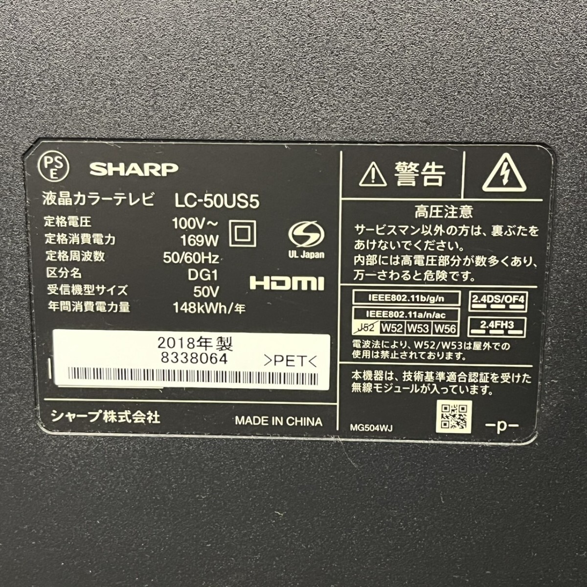 【中古】SHARP シャープ AQUOS 液晶カラーテレビ LC-50US5