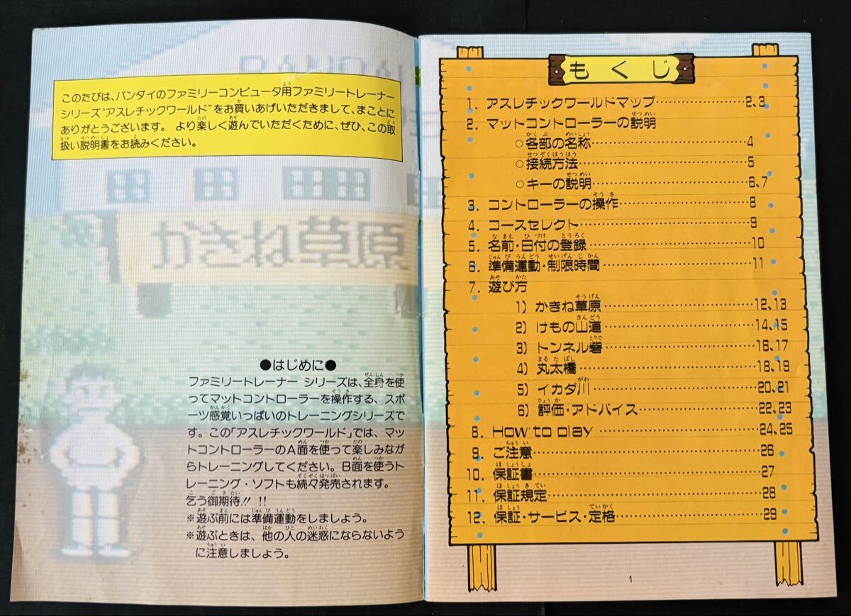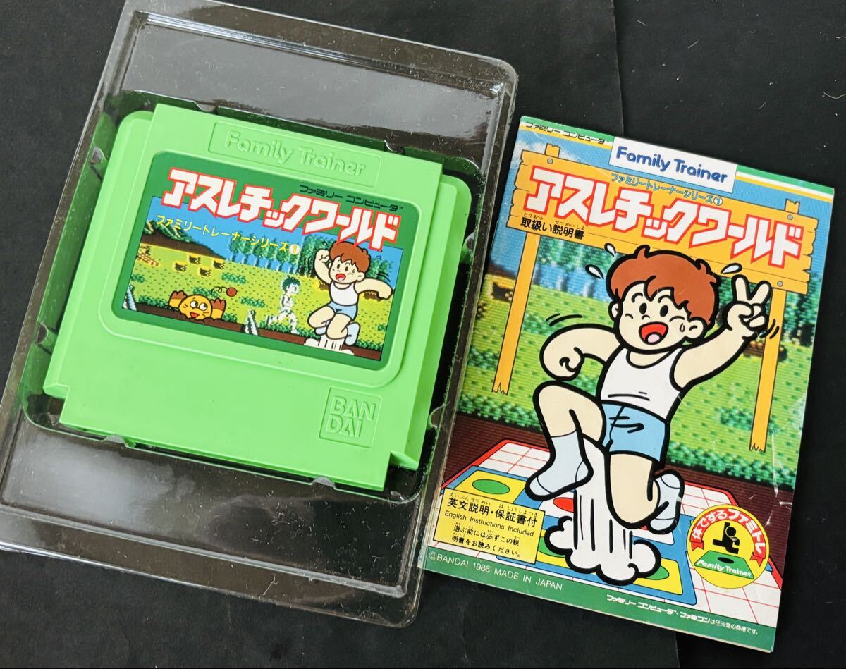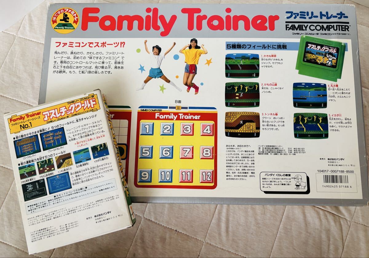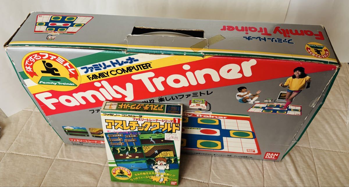 ファミリーコンピュータ ファミリートレーナー 基本セット 専用カセットアスレチックワールド マットコントローラー ファミトレ バンダイ BANDAI 箱、説明書(湿気によるシミがあります)付き