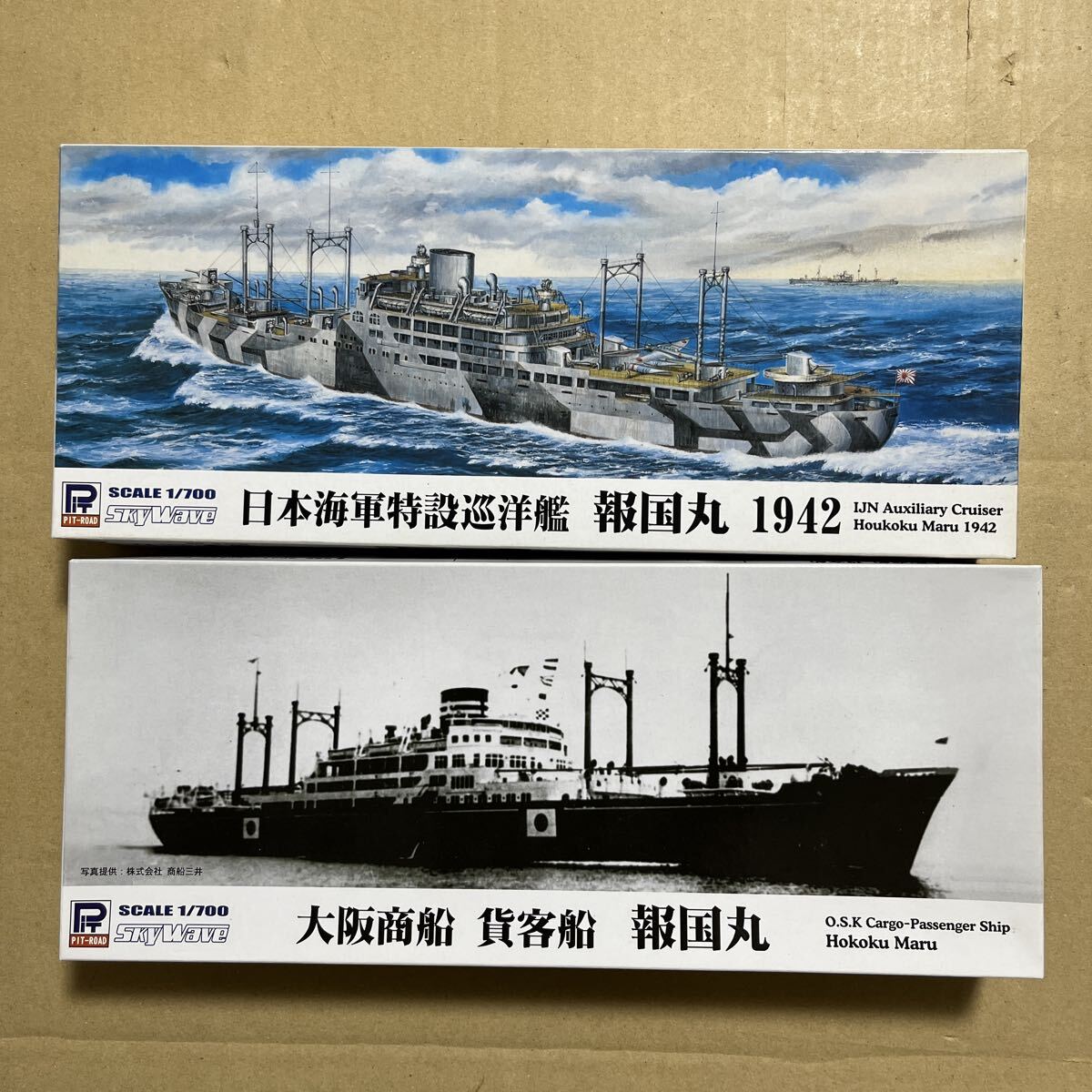 1/700 ピットロード 日本海軍 特設巡洋艦 報国丸 1942 と 大阪商船 貨客船 報国丸 セット 未組立