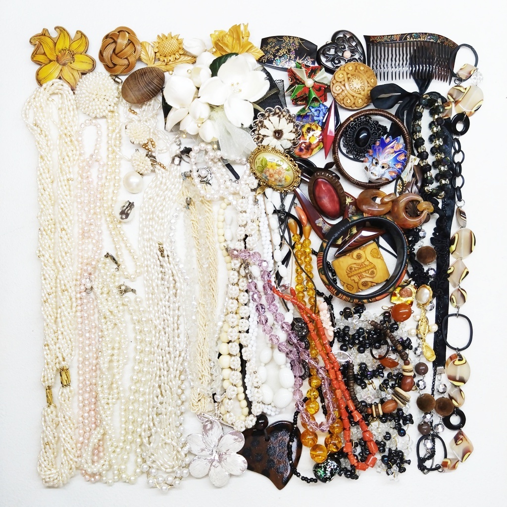 ▼商品特徴 商品に興味をもっていただき、ありがとうございます。 写真にありますアクセサリー類 まとめ商品です。 ◆商品 : アクセサリー類 卸 ・画像にあります様に多種多様なアクセサリーになります。 ※各商品材質など一切査定しておりませんのでご了承ください。 ◆総重量 : 1,045g ◆状 態 : USED ・金具の壊れているもの、傷、汚れがあるものもあります。 ※返金には対応出来ませんのでご了承ください。 ※同梱可能な場合もございますのでその際はおまとめ取引をご選択ください。 ※配送方法がヤフネコ又ゆうパック2種類ございますので同梱出来かねる場合がございます。 こちらで他にも出品中。Crew・actショップ↓↓ ![]() | ||