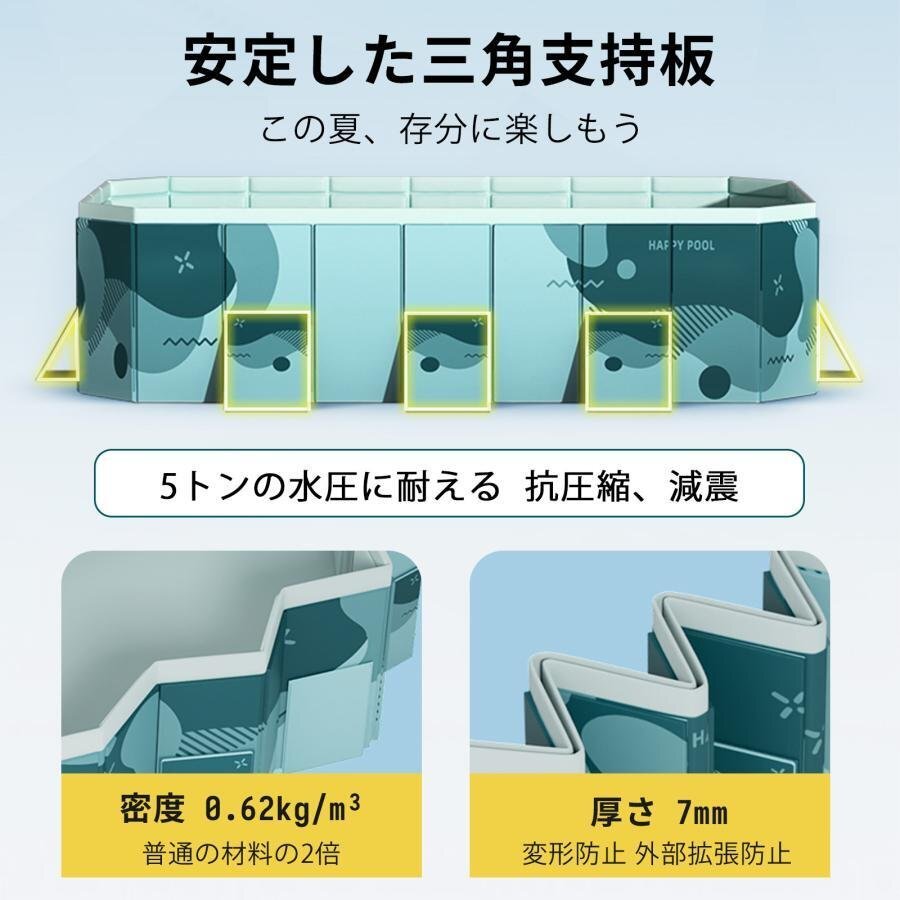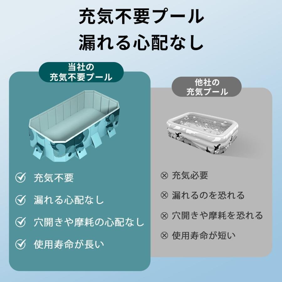 【折りたたみ式プール、充気不要で収納も簡単】新型の折りたたみ式プールは、プールの接続部分を強化し、側面の漏れや変形を減少させました。迅速に展開でき、組み立てる必要がなく、膨張式プールと比べて、空気が漏れないため、より簡単で迅速、また耐久性があり安定しています。
