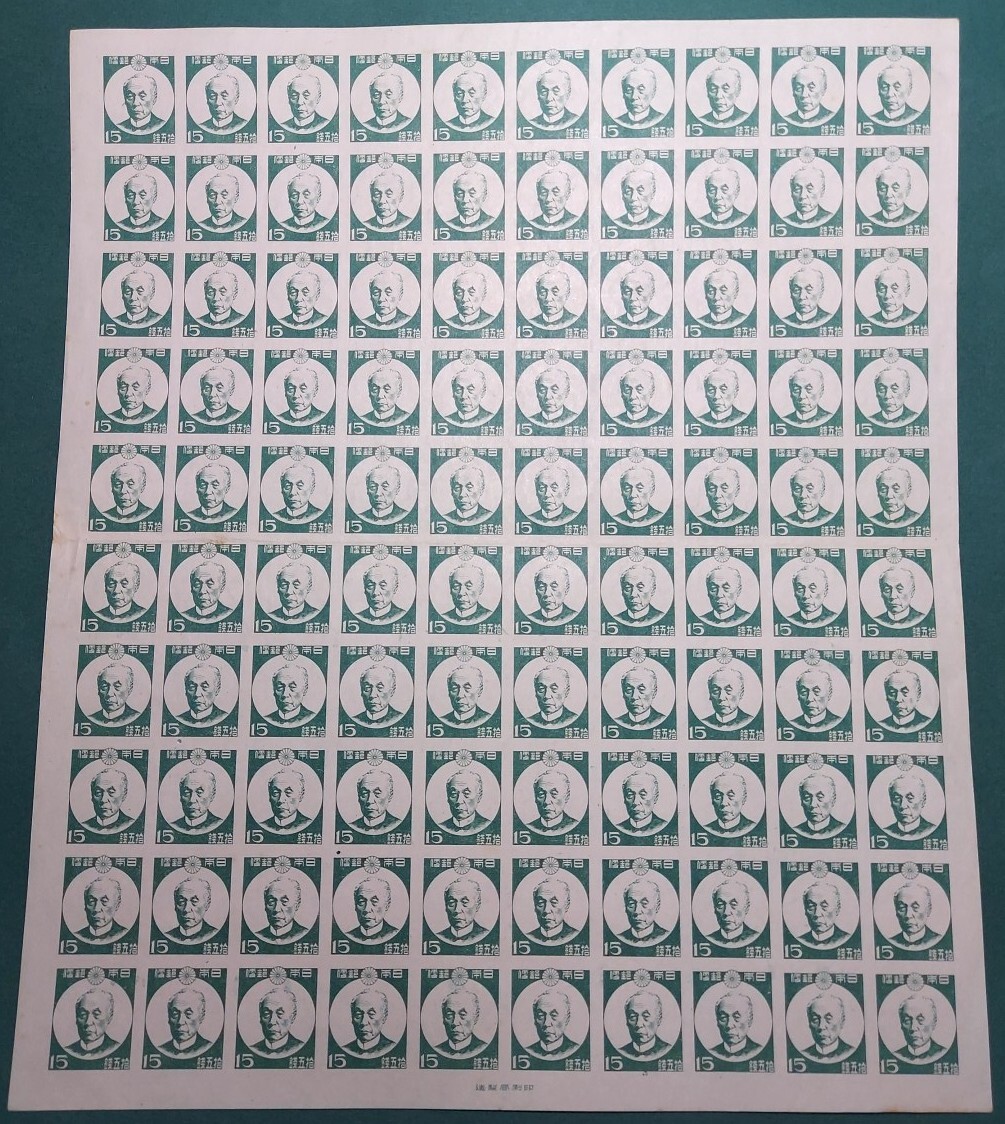 e15 普通切手 第1次新昭和 15銭「前島密」100面シート
