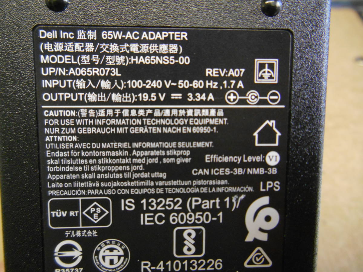 DELL 純正 ACアダプタ HA65NS5-00 19.5V 3.34A 外径4.5 内径3 (43