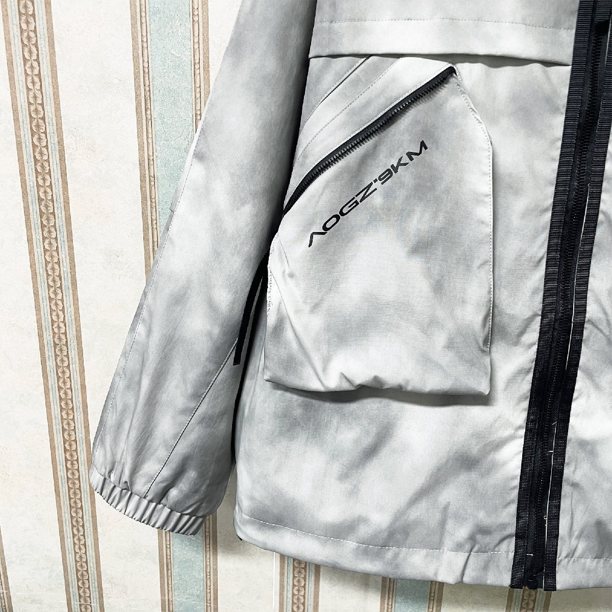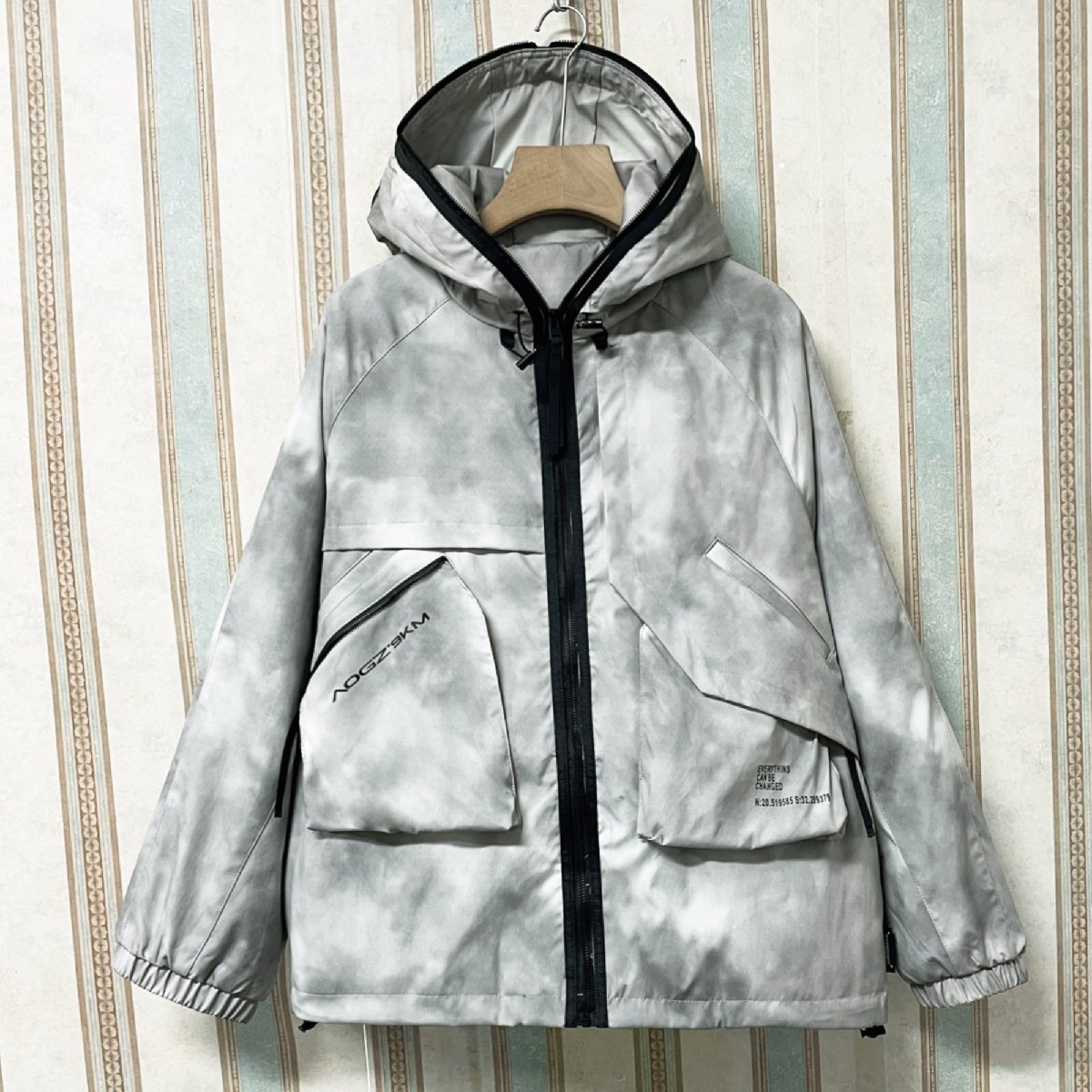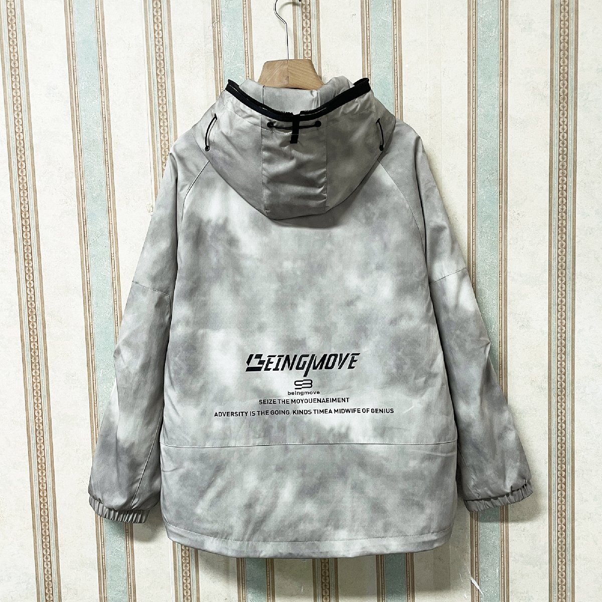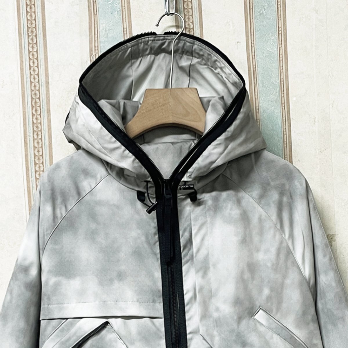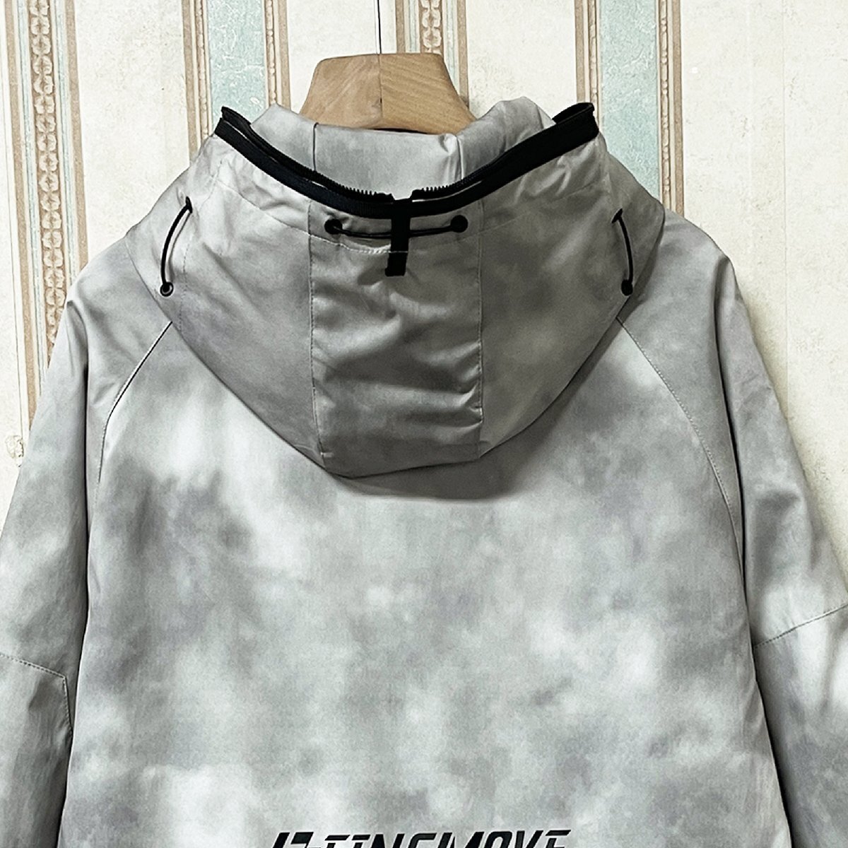 一見はスタンダードなジャケットに見えるものの、ポケットや背中部分に施された英字デザインが、周りと差がつく洒落感を演出します。取り外し不可のフードと裾はドローストリングが付いており、しっかりと絞れることで風と寒さを防ぎます。フロントにポケットを4つ装備しており、持ち物に便利で、収納性のある機能面を充実。