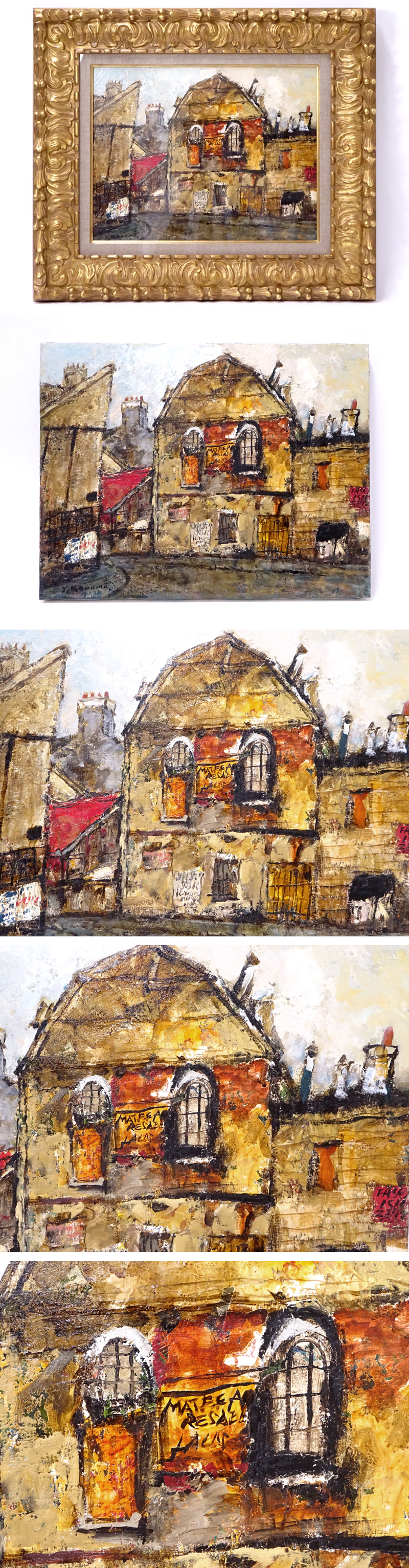 慶應◆【児玉幸雄】真筆 油彩F6号風景画『パリーの裏街』大地堂額装 タトウ 東京美術倶楽部鑑定証書付