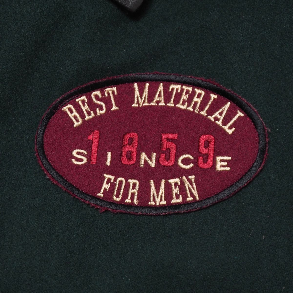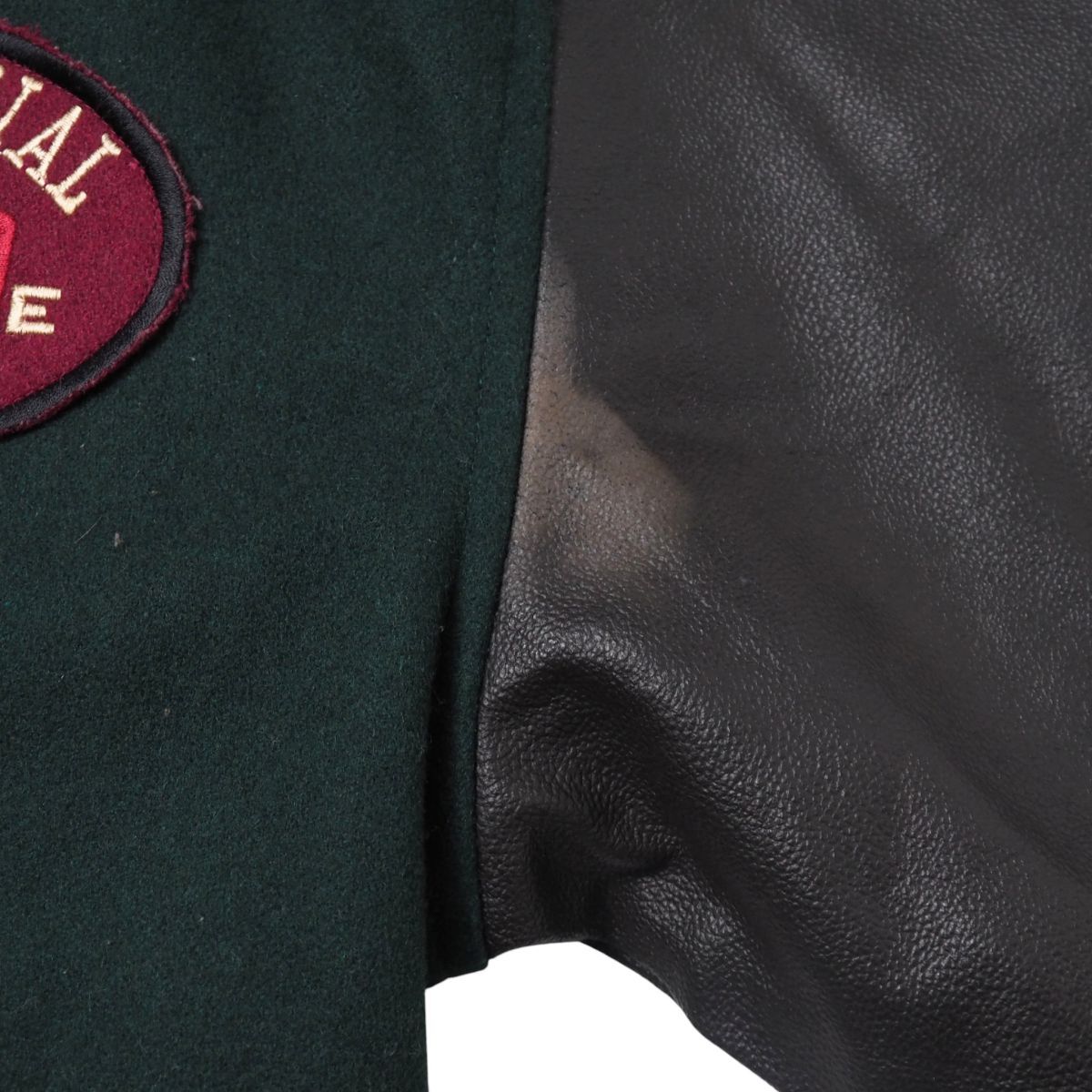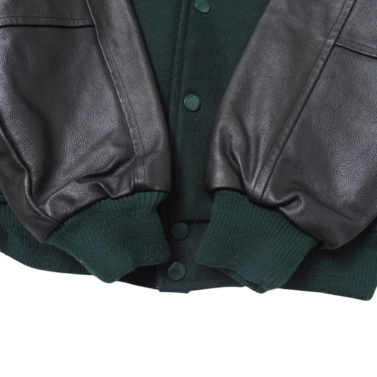 TJ4829▽Corsaire メンズL ウール×レザー ワッペン 刺繍 スタジアムジャンバー ブルゾン ジャケット グリーン×ブラック系 | |||