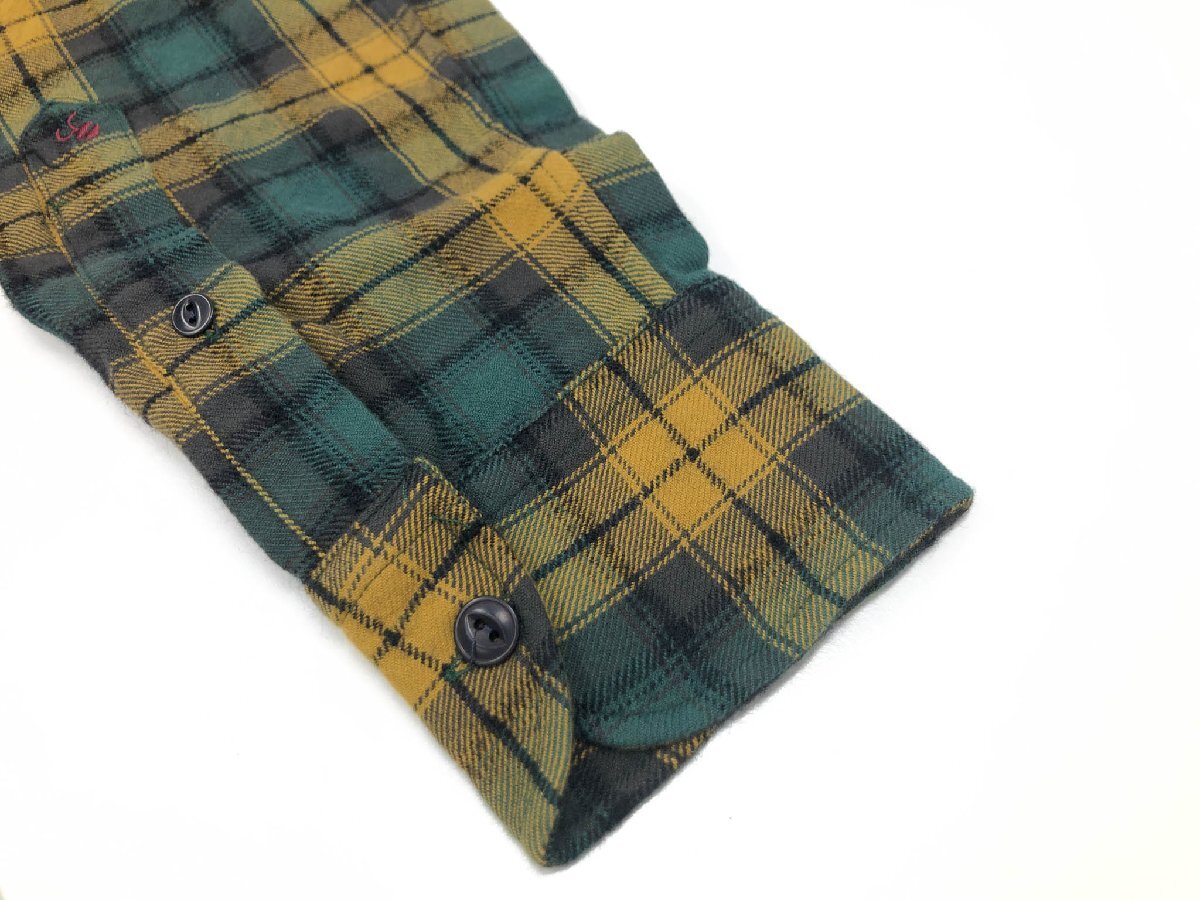 未使用【グランシャツ GLANSHIRT】5XGA00 G9085 720 定価59400円 綿×毛 チェック柄 長袖シャツ(メンズ)size41 黄×緑系 伊製 ◇17GRS290◇