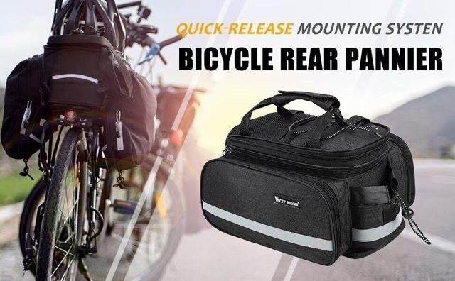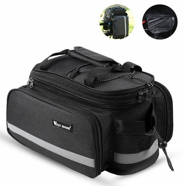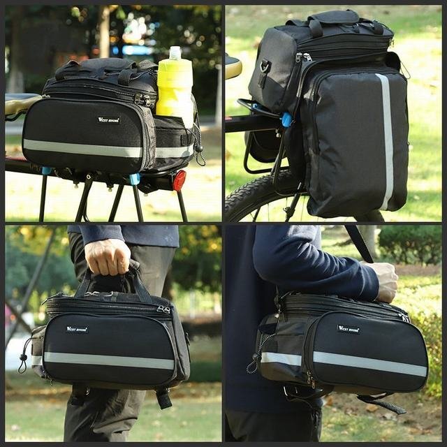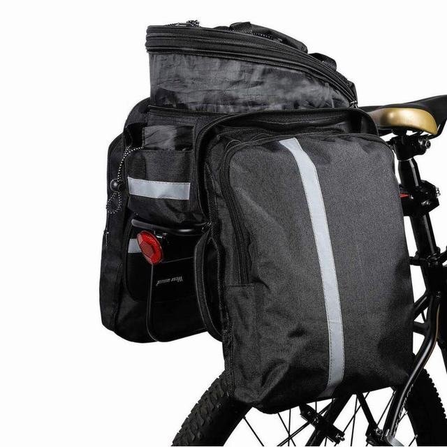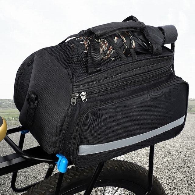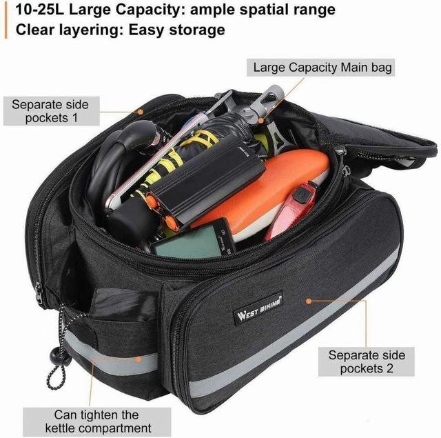 【拡張展開で大容量に】 ライダーがより多くのものを持ち運ぶ必要があるときリアバッグになるように展開することができます。 ミニトランクなどの自転車のアクセサリーをしっかりと固定するために、自転車のトランクバッグの上部にシュリンクストラップ付きのメッシュポケットもあります。